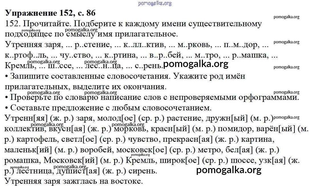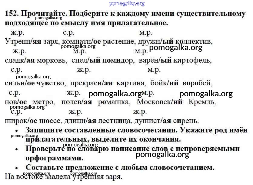 Готовые ответы - Русский язык 3 класс Канакина В.П. - упражнение № часть 2 152