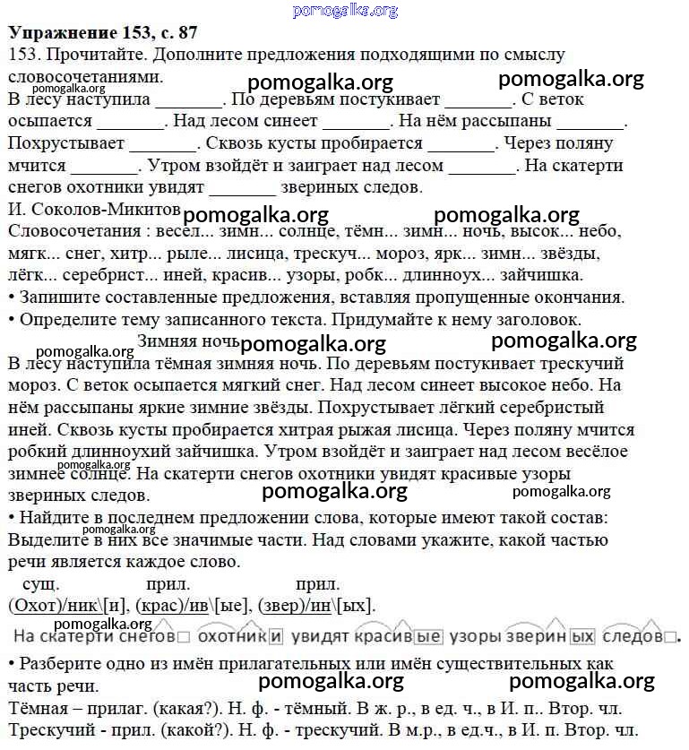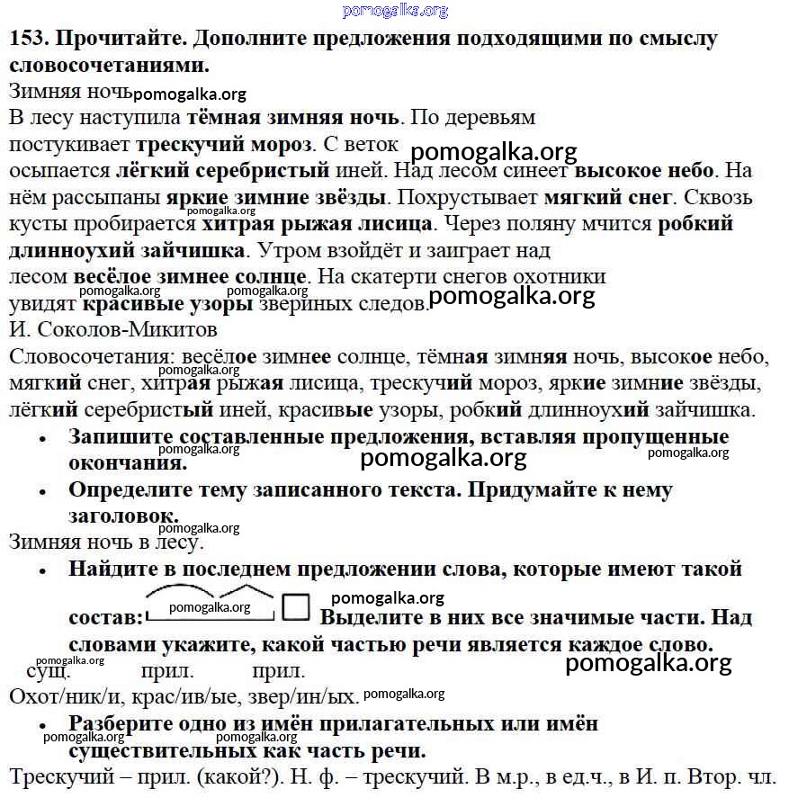Готовые ответы - Русский язык 3 класс Канакина В.П. - упражнение № часть 2 153