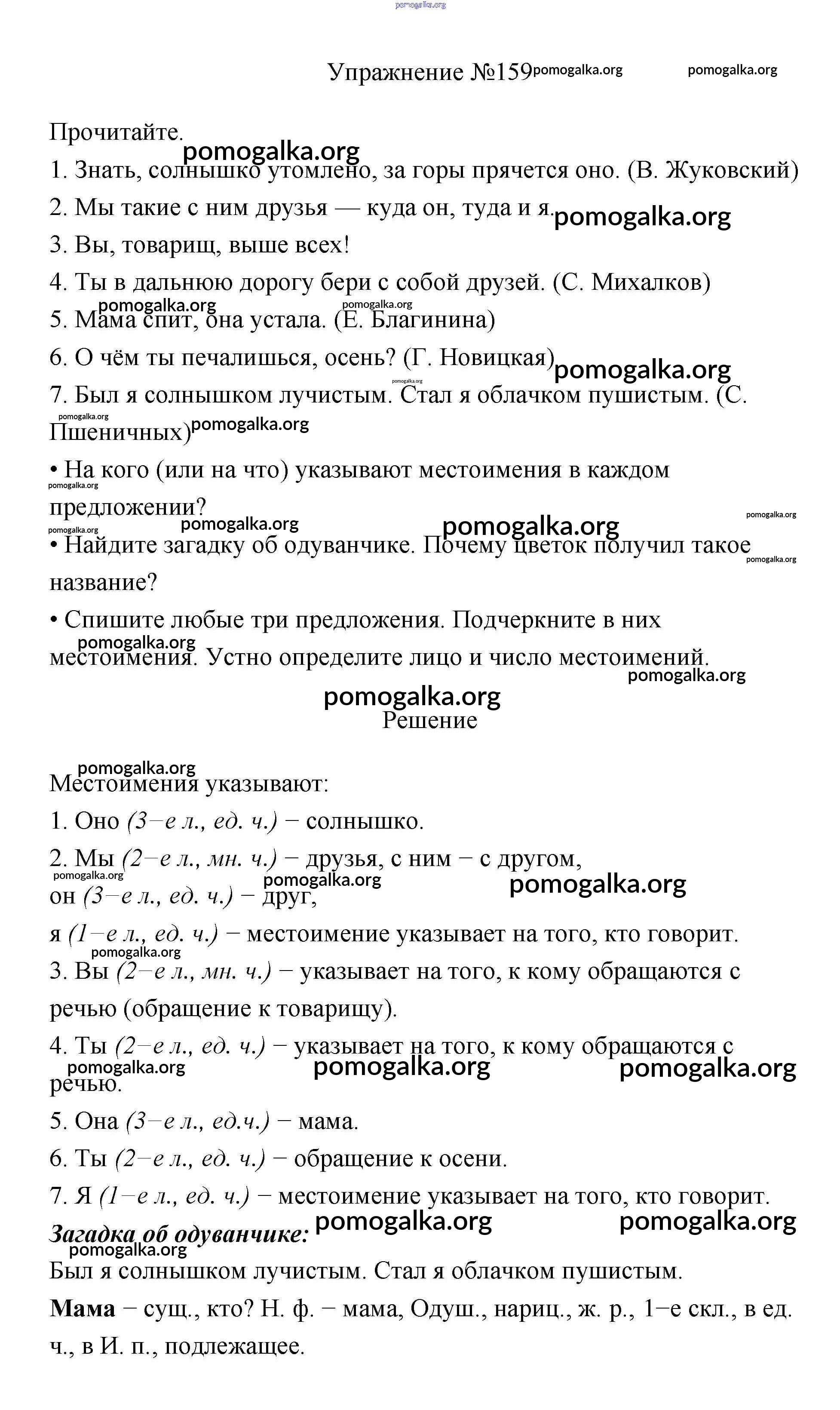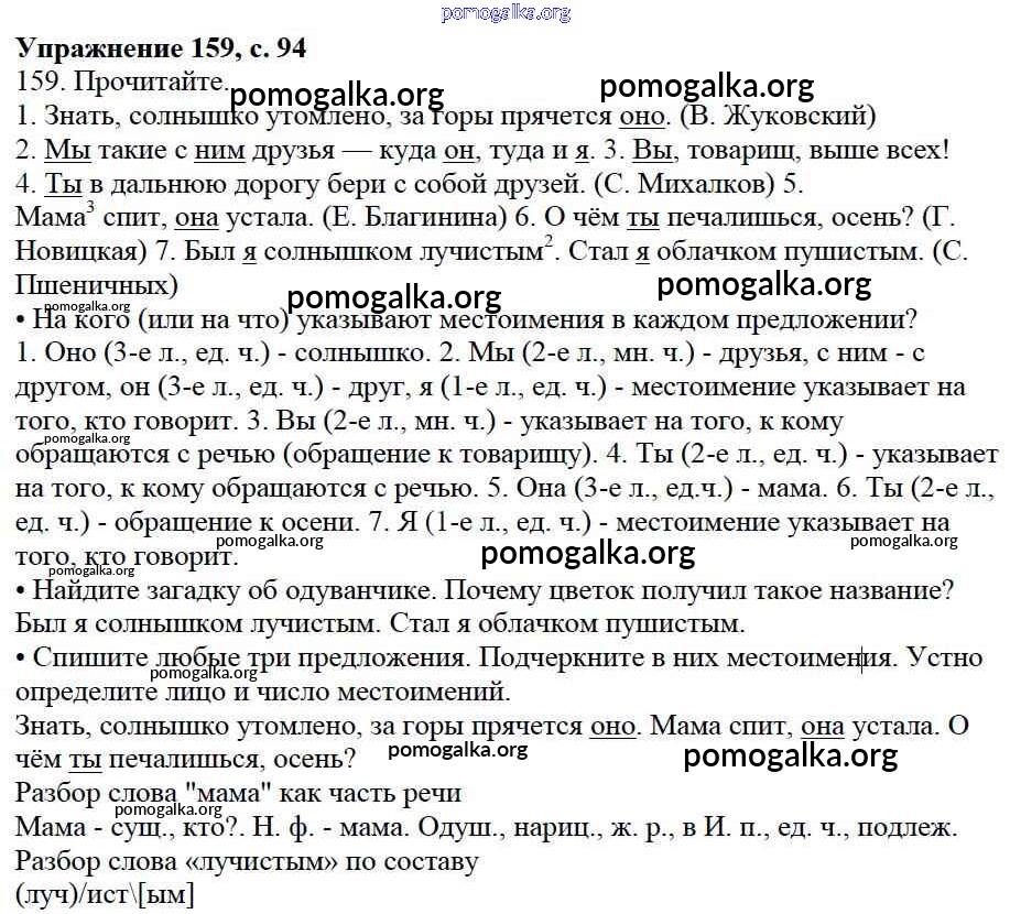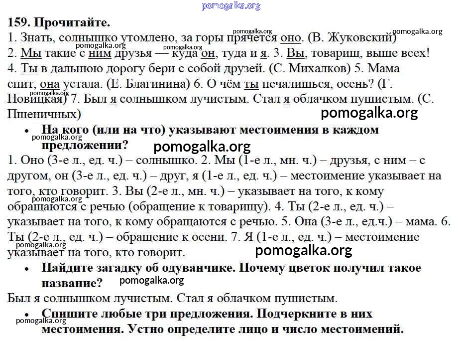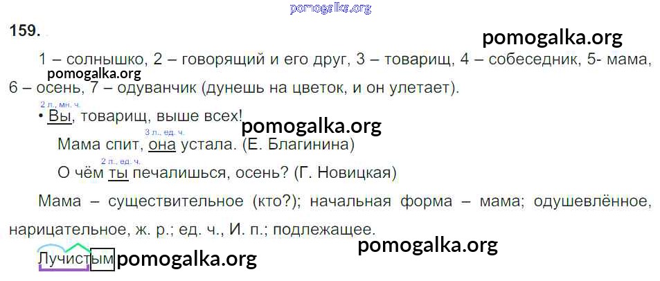 Готовые ответы - Русский язык 3 класс Канакина В.П. - упражнение № часть 2 159