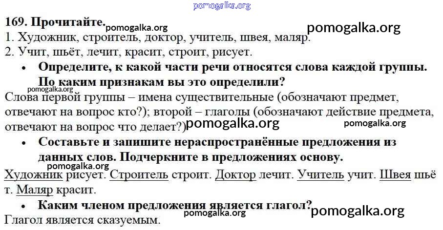 Готовые ответы - Русский язык 3 класс Канакина В.П. - упражнение № часть 2 169