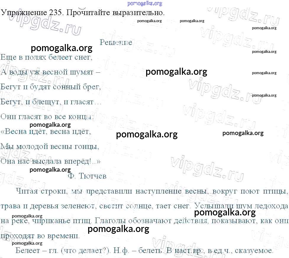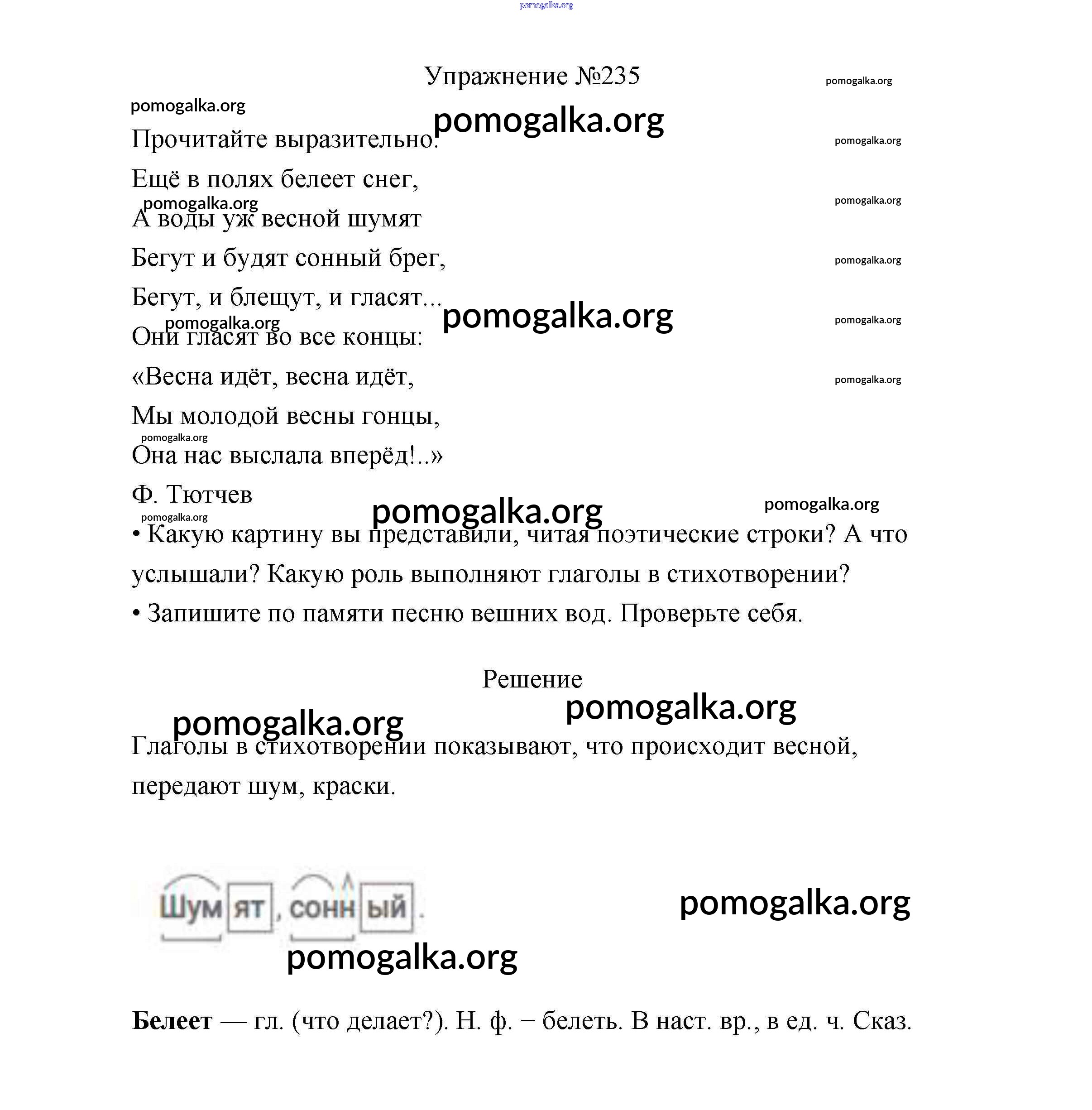 Готовые ответы - Русский язык 3 класс Канакина В.П. - упражнение № часть 2 235