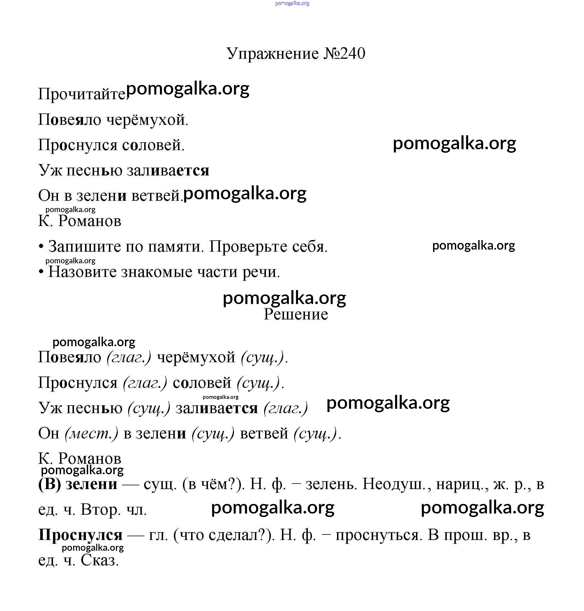 Готовые ответы - Русский язык 3 класс Канакина В.П. - упражнение № часть 2 240