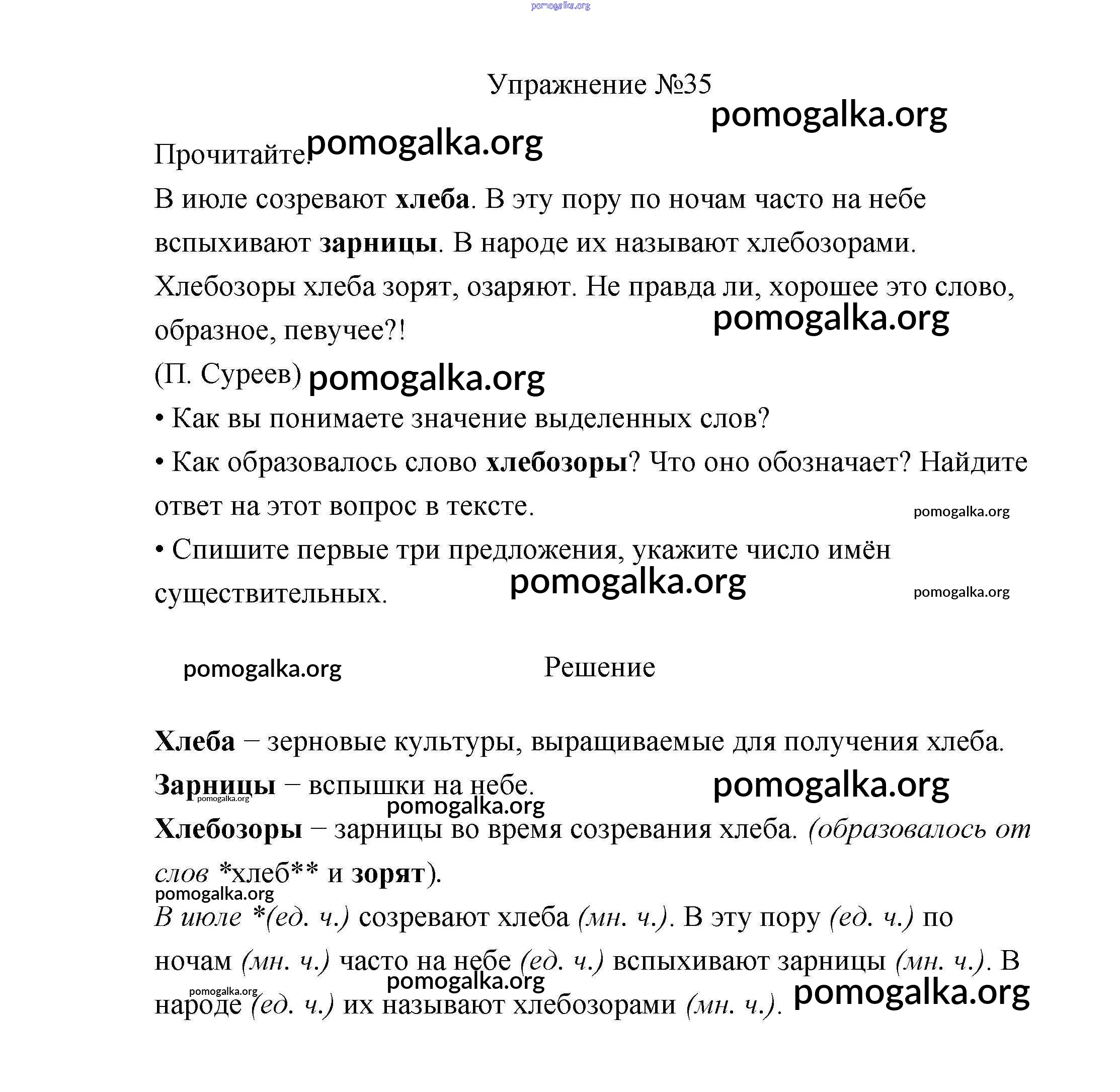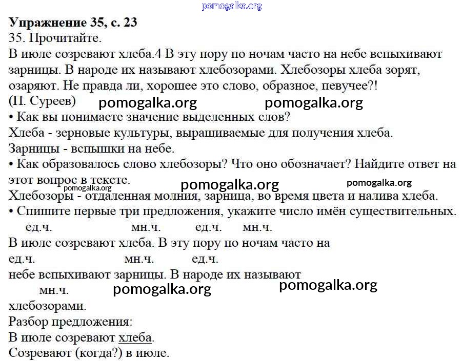 Готовые ответы - Русский язык 3 класс Канакина В.П. - упражнение № часть 2 35