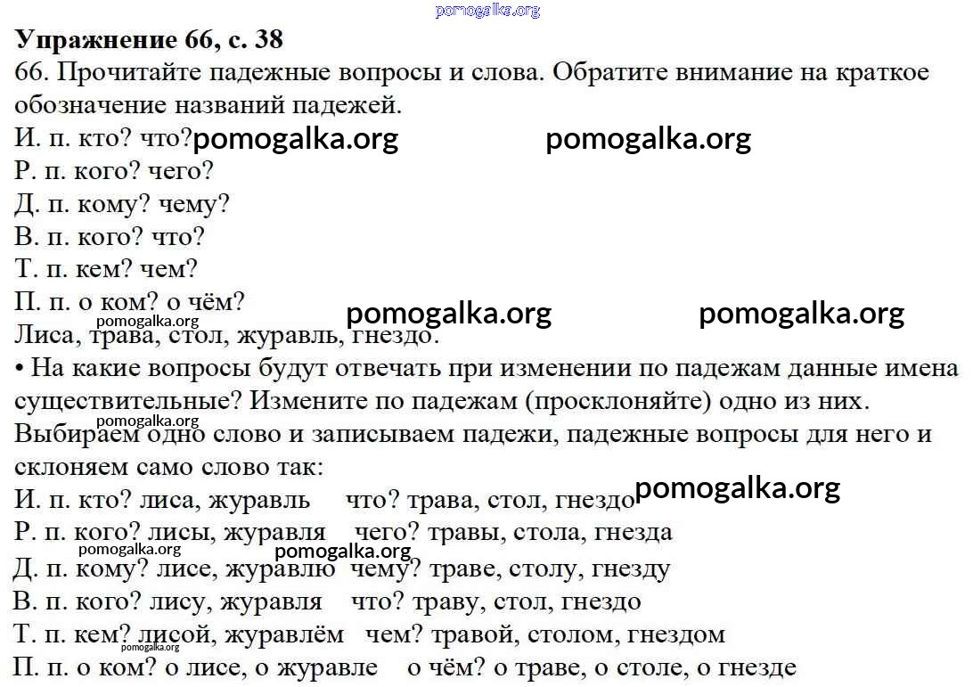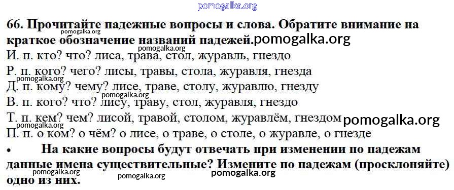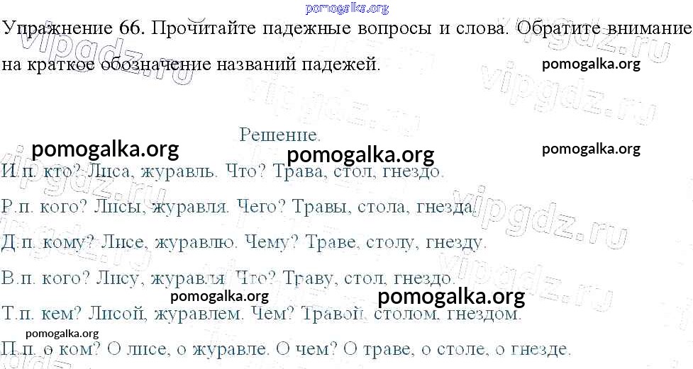 Готовые ответы - Русский язык 3 класс Канакина В.П. - упражнение № часть 2 66