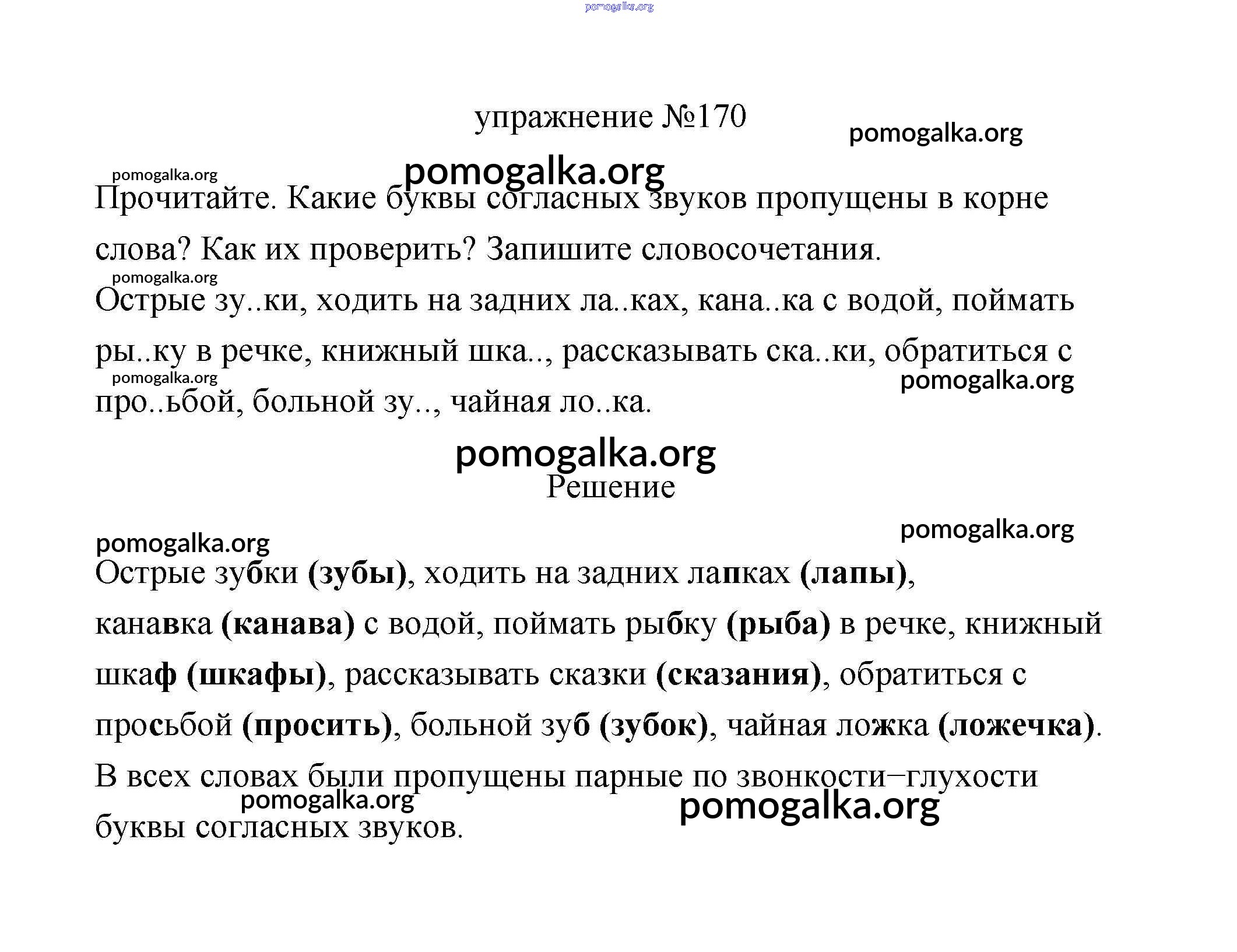 Готовые ответы - Русский язык 3 класс Климанова (учебник новый) - упражнение часть 1 170