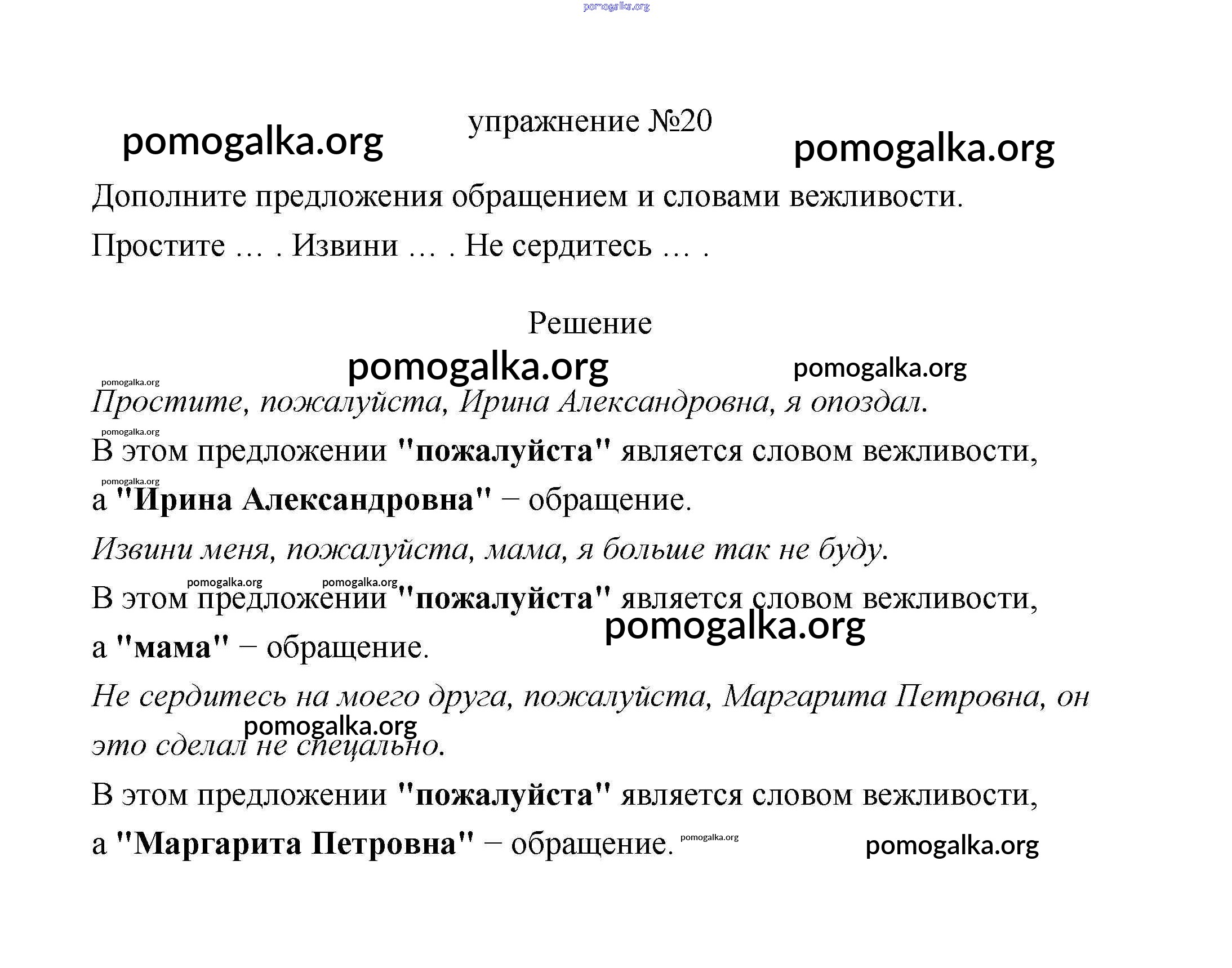 Готовые ответы - Русский язык 3 класс Климанова (учебник новый) - упражнение часть 1 20