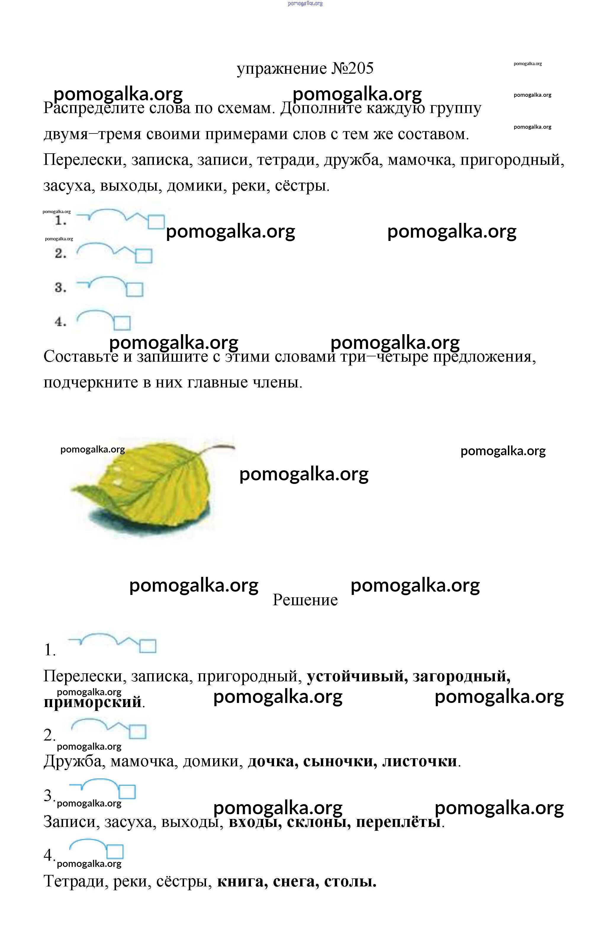 Готовые ответы - Русский язык 3 класс Климанова (учебник новый) - упражнение часть 1 205