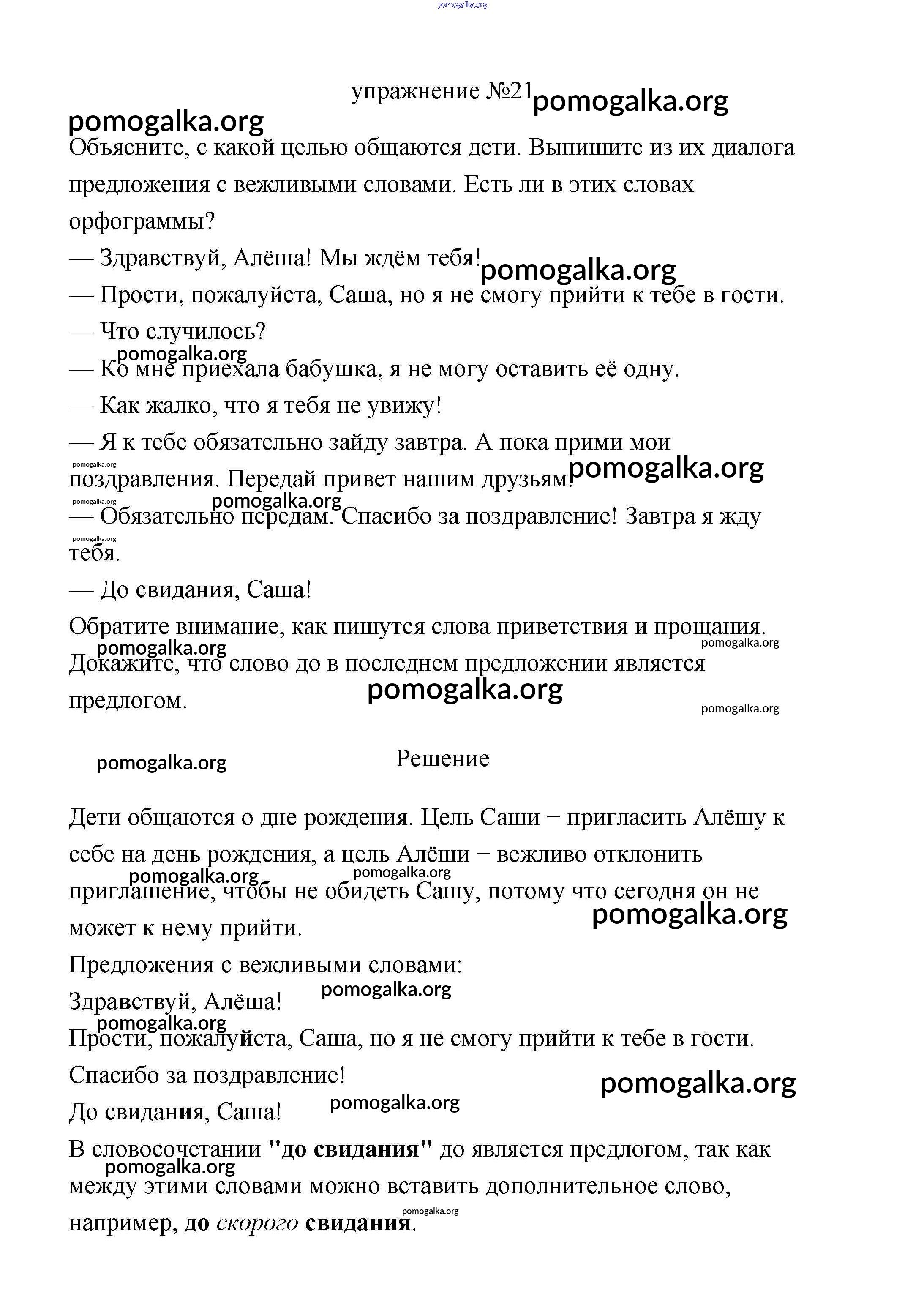 Готовые ответы - Русский язык 3 класс Климанова (учебник новый) - упражнение часть 1 21