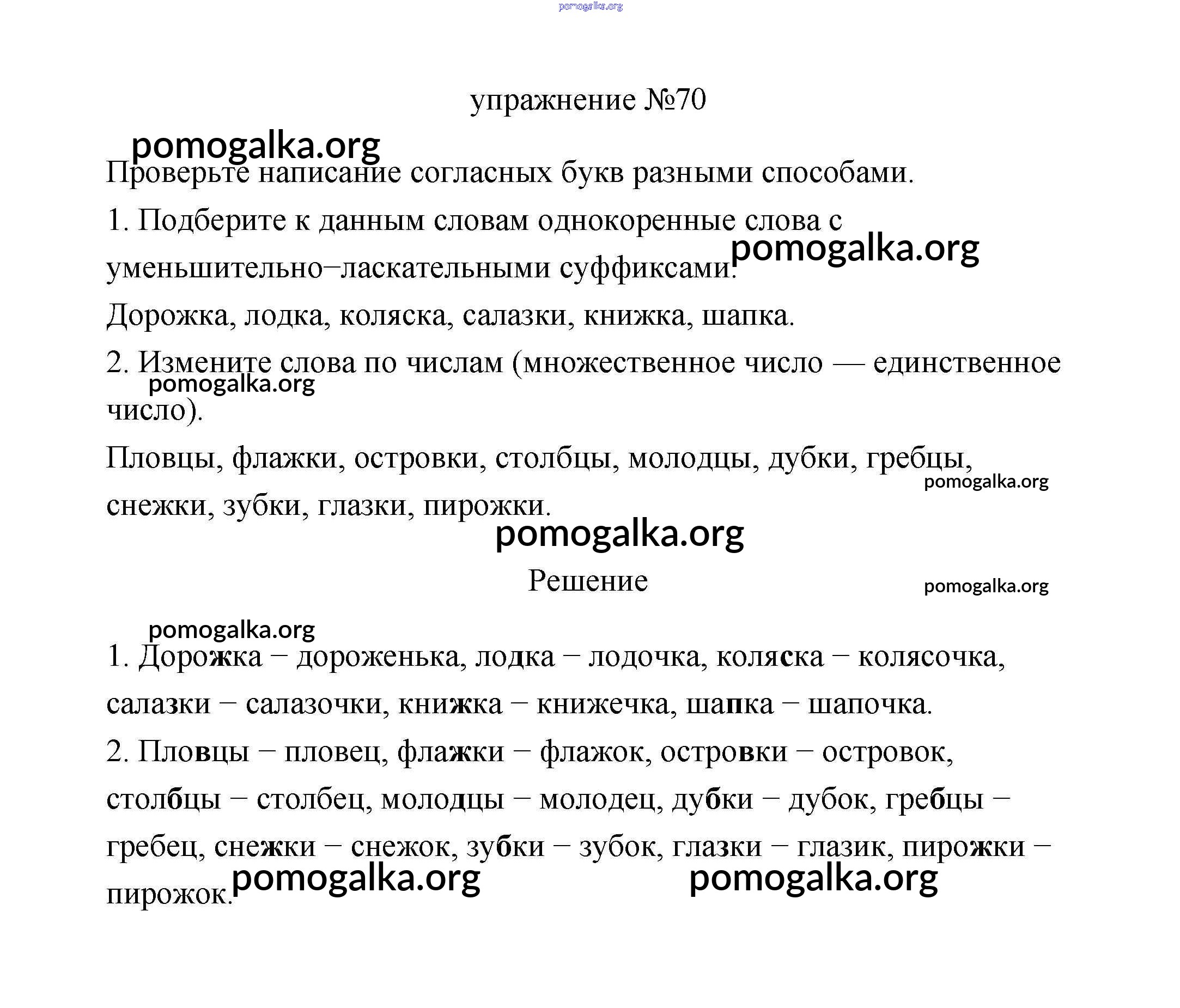 Готовые ответы - Русский язык 3 класс Климанова (учебник новый) - упражнение часть 1 70