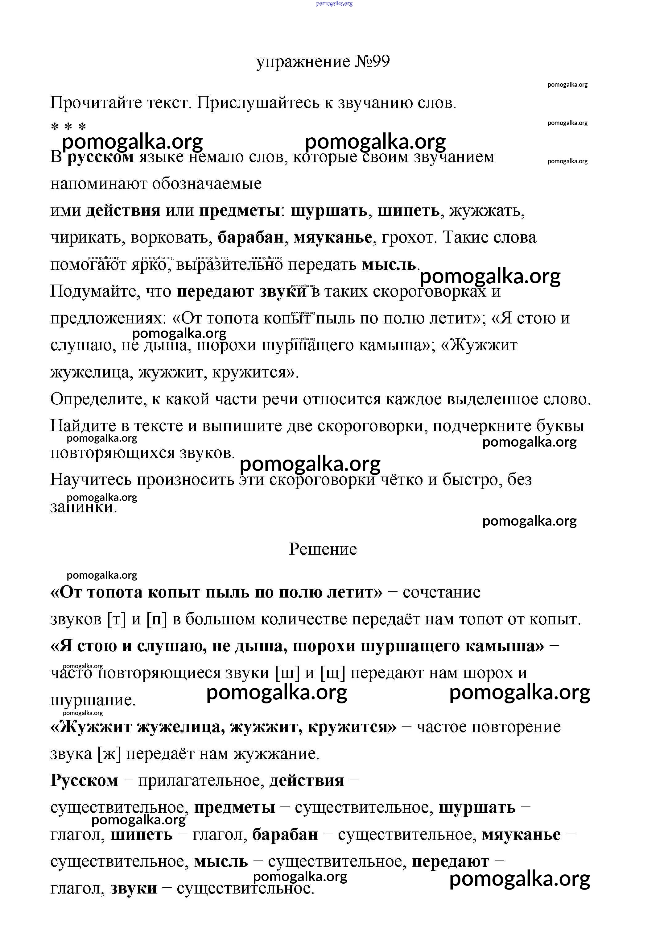 Готовые ответы - Русский язык 3 класс Климанова (учебник новый) - упражнение часть 1 99