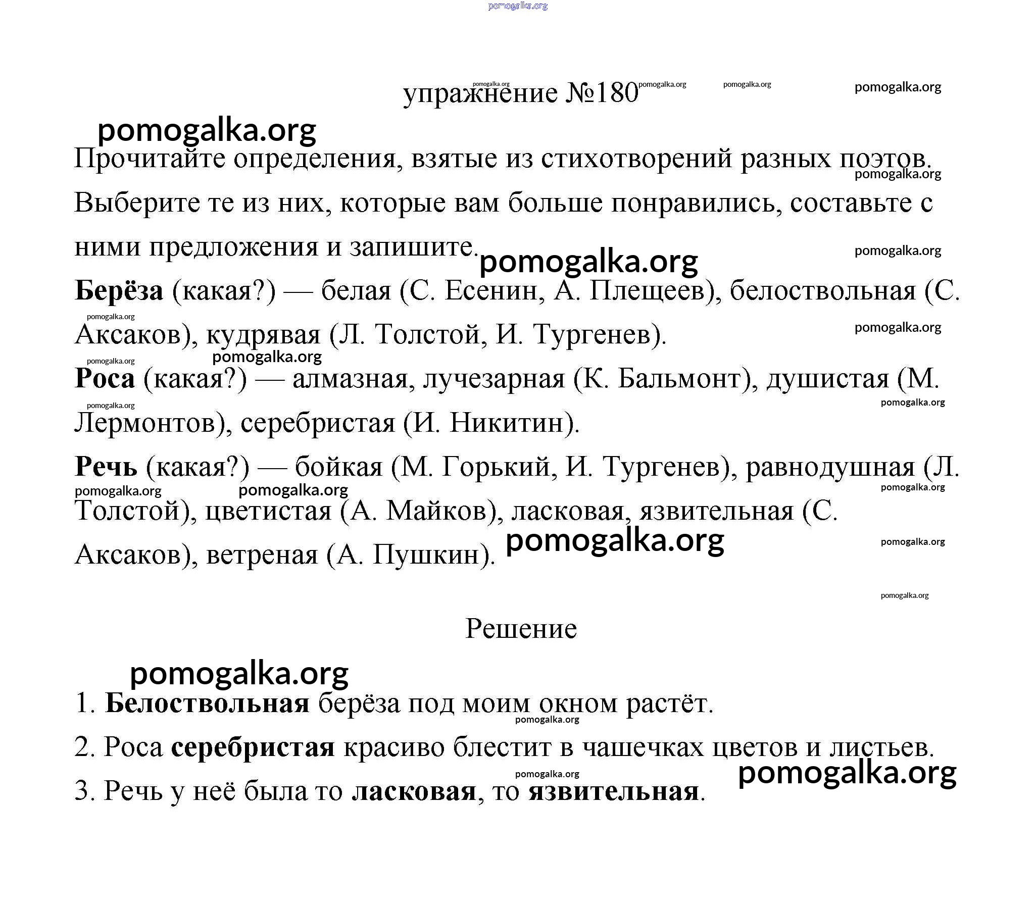 Готовые ответы - Русский язык 3 класс Климанова (учебник новый) - упражнение часть 2 180