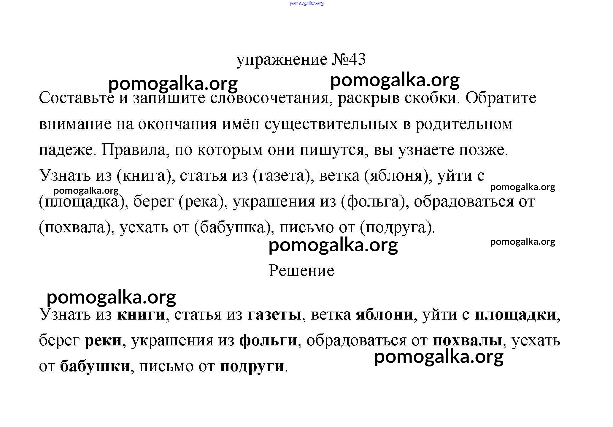 Готовые ответы - Русский язык 3 класс Климанова (учебник новый) - упражнение часть 2 43