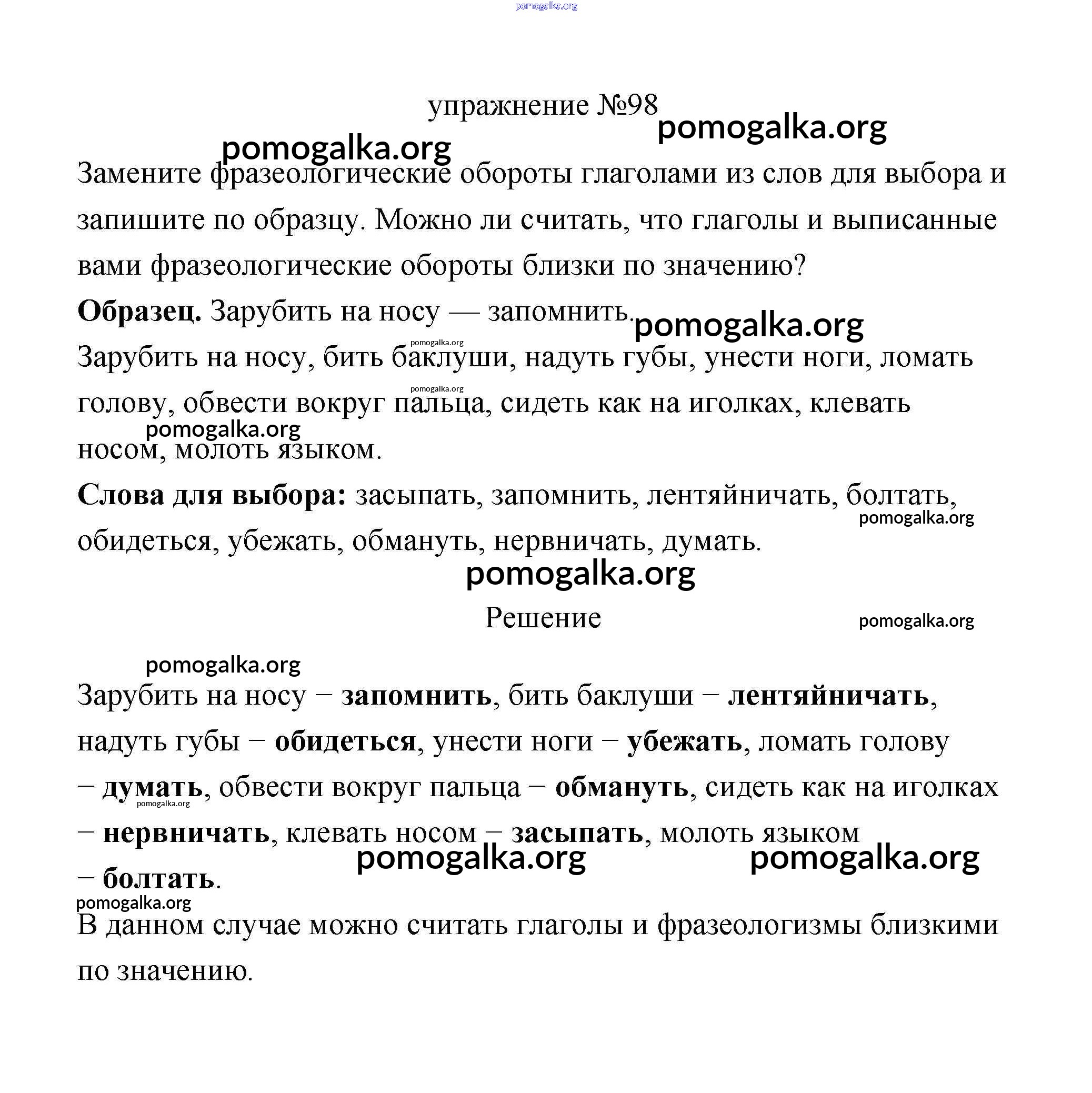 Готовые ответы - Русский язык 3 класс Климанова (учебник новый) - упражнение часть 2 98