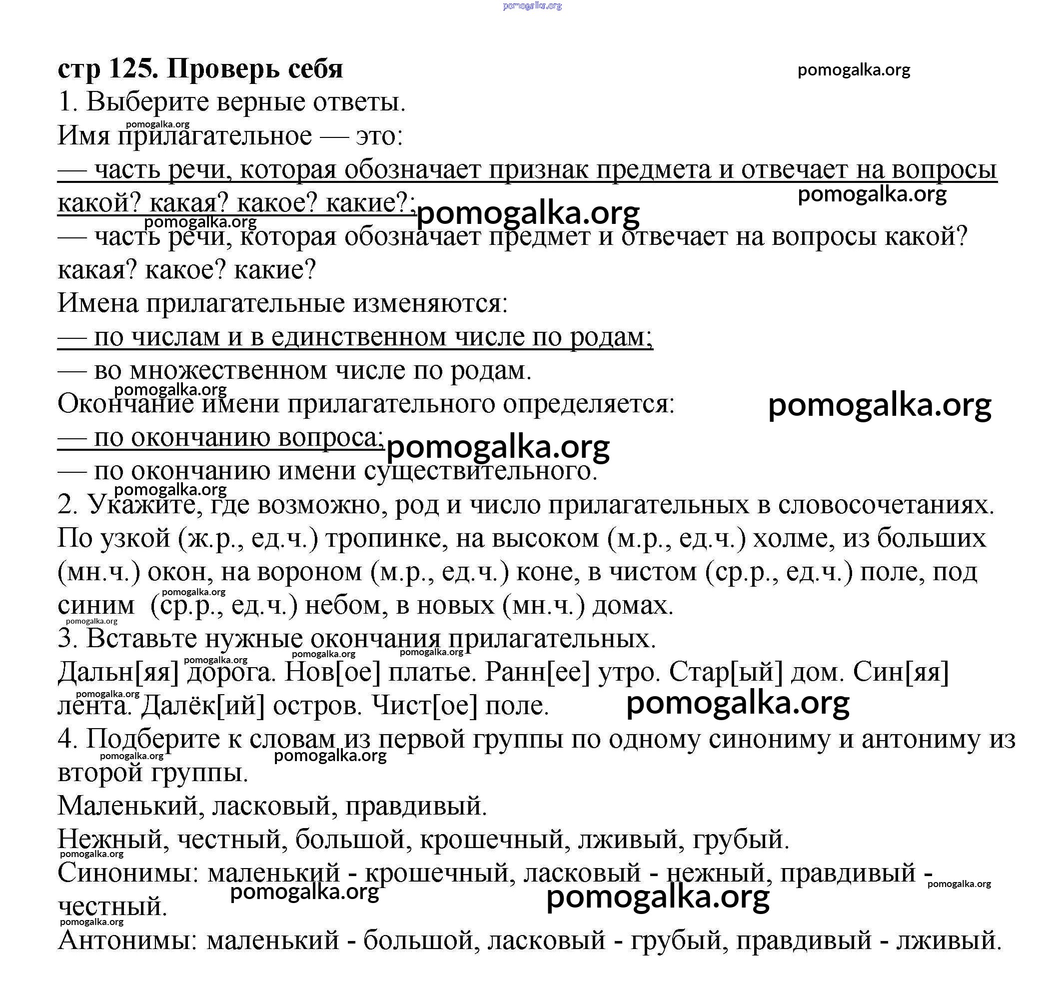 Готовые ответы - Русский язык 3 класс Климанова Л.Ф. - проверь себя (страницы) часть 2 Страница 125