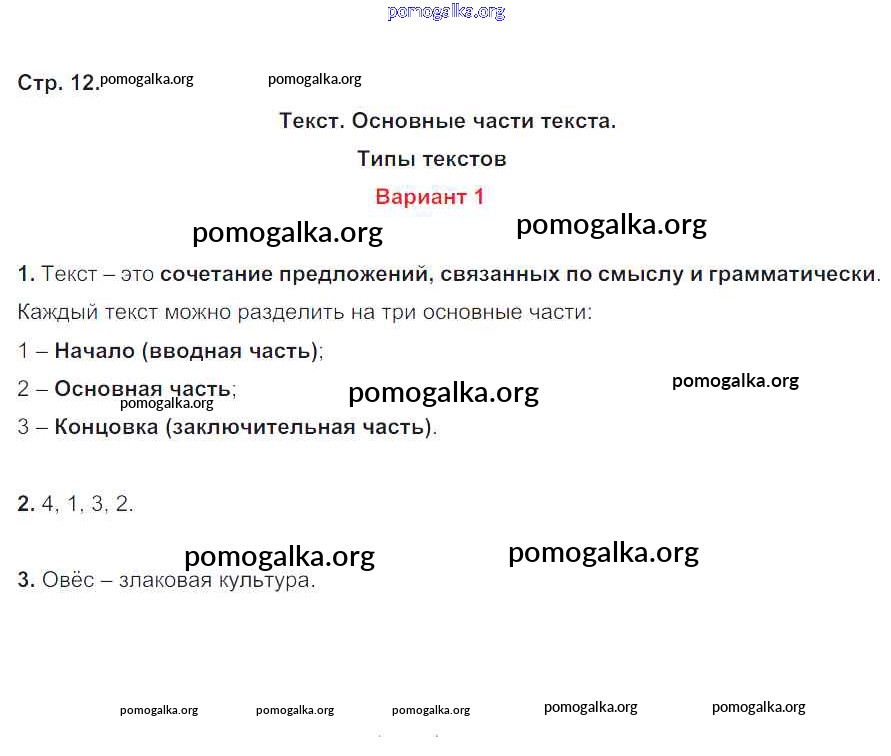 Готовые ответы - Русский язык 4 класс контрольные работы Крылова О.Н. - часть 1. страница 12