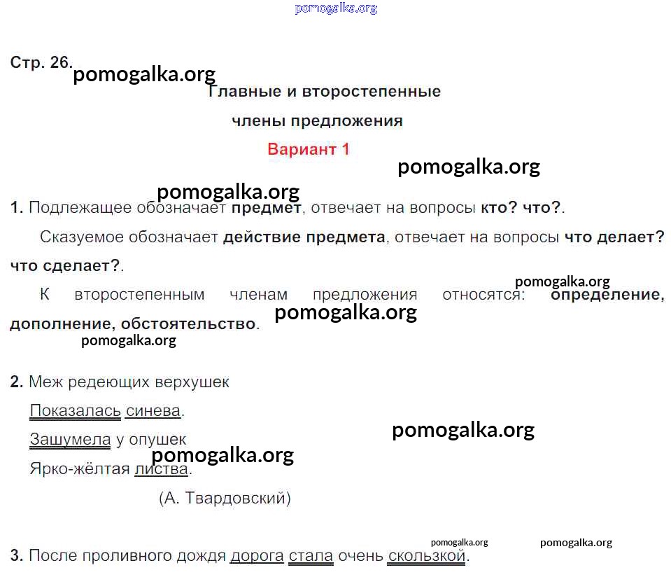 Готовые ответы - Русский язык 4 класс контрольные работы Крылова О.Н. - часть 1. страница 26