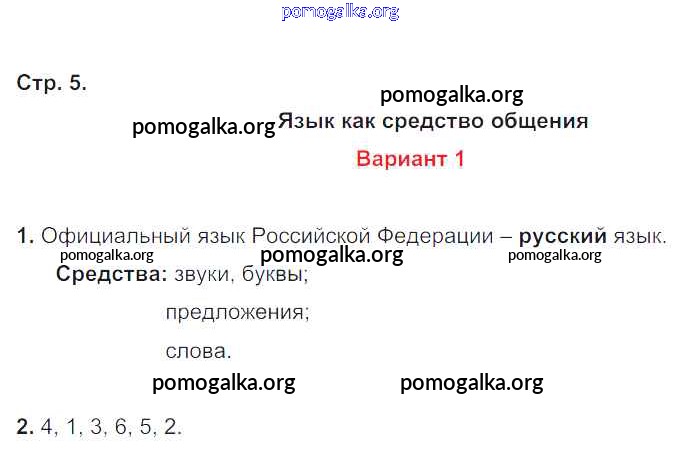 Готовые ответы - Русский язык 4 класс контрольные работы Крылова О.Н. - часть 1. страница 5