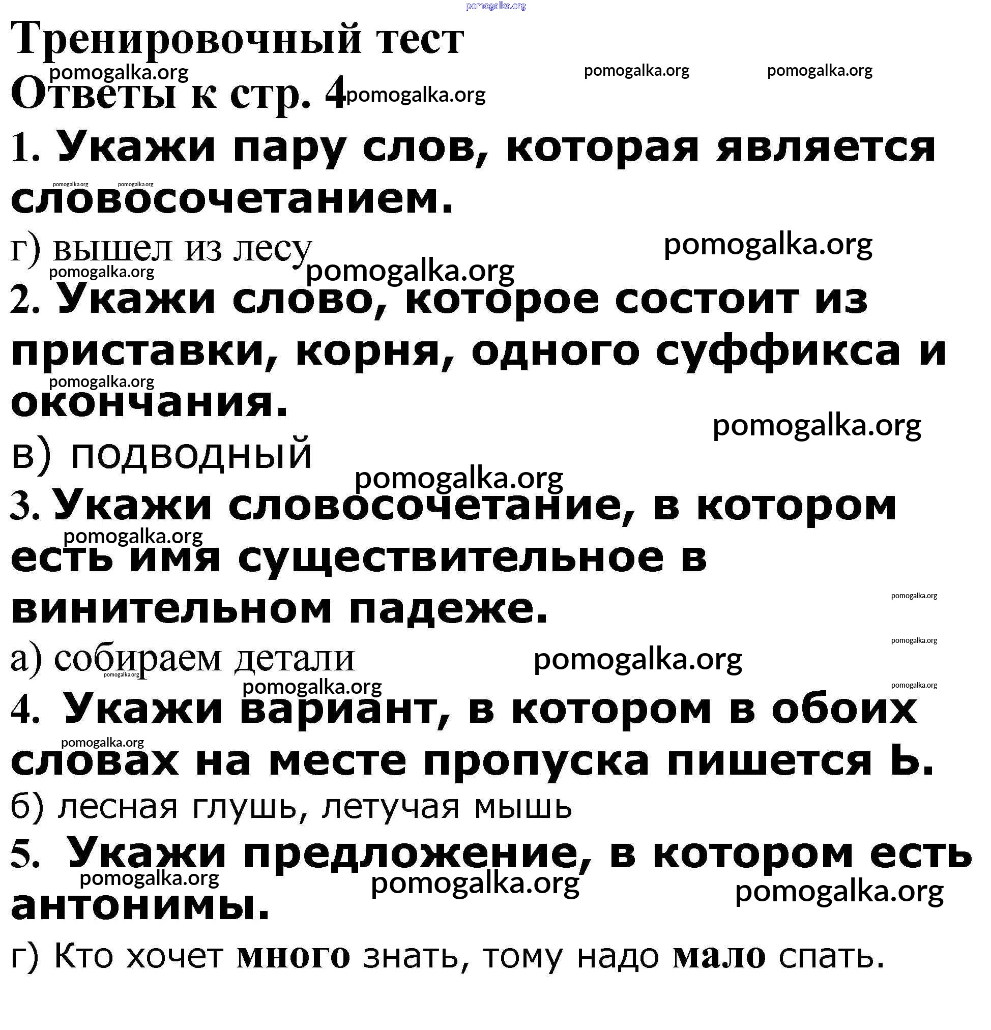 Готовые ответы - Русский язык 4 класс проверочные и контрольные работы Максимова Т.Н. - повторение Тренировочный тест стр. 4