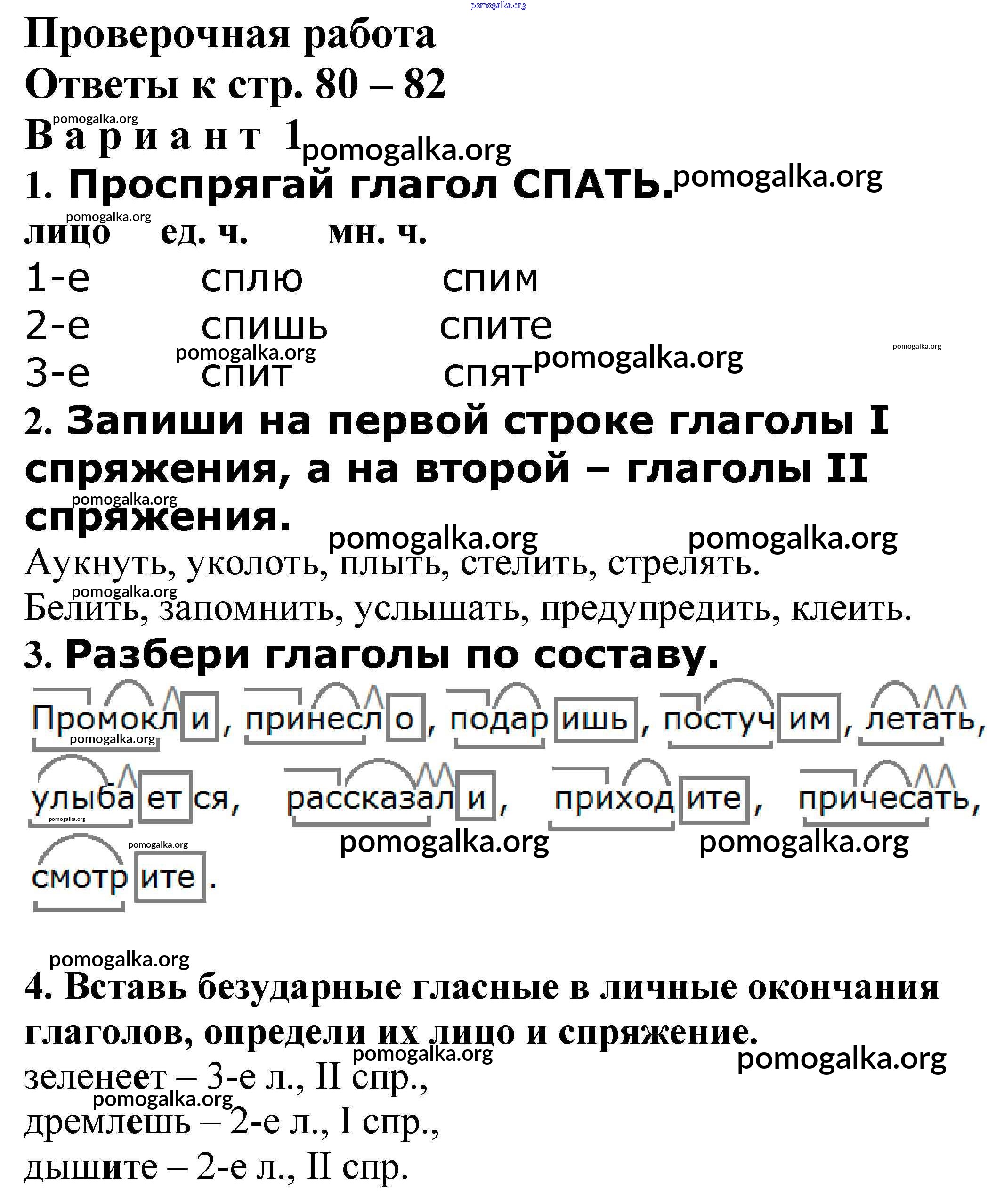 Готовые ответы - Русский язык 4 класс проверочные и контрольные работы Максимова Т.Н. - спряжение глаголов Проверочная работа стр. 80 – 82