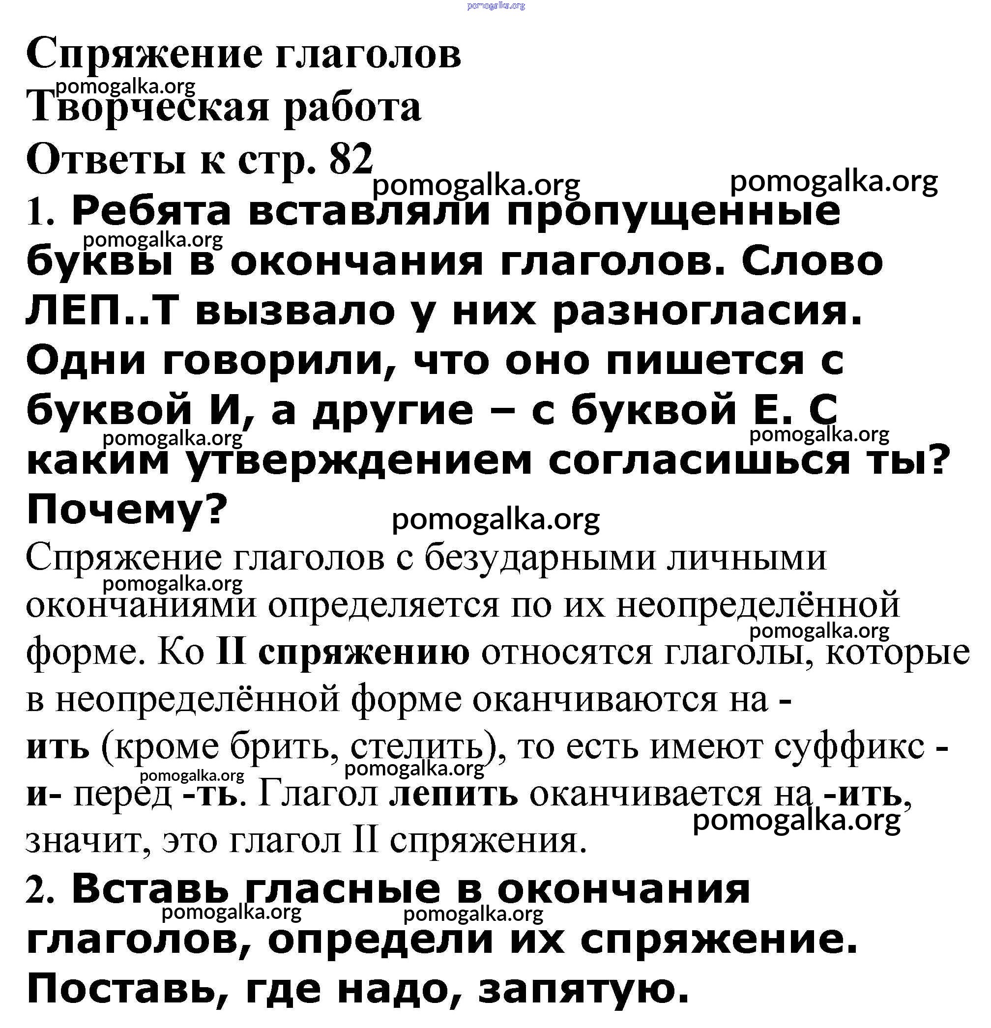 Готовые ответы - Русский язык 4 класс проверочные и контрольные работы Максимова Т.Н. - спряжение глаголов Творческая работа стр. 82