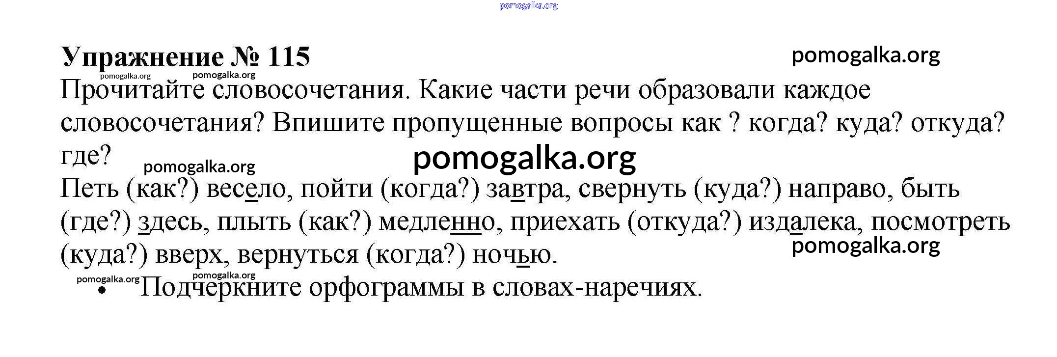 Готовые ответы - Русский язык 4 класс рабочая тетрадь Канакина В.П. - часть 1. задание № 115
