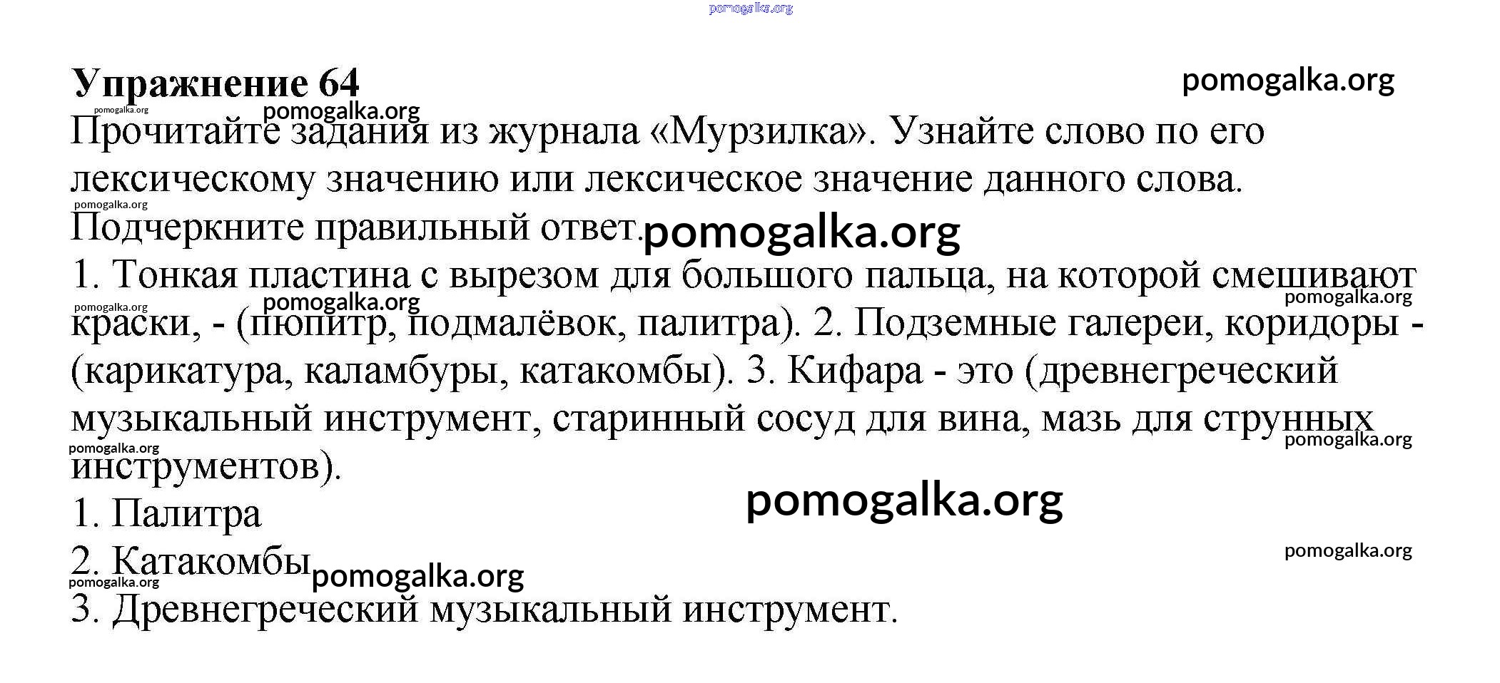 Готовые ответы - Русский язык 4 класс рабочая тетрадь Канакина В.П. - часть 1. задание № 64