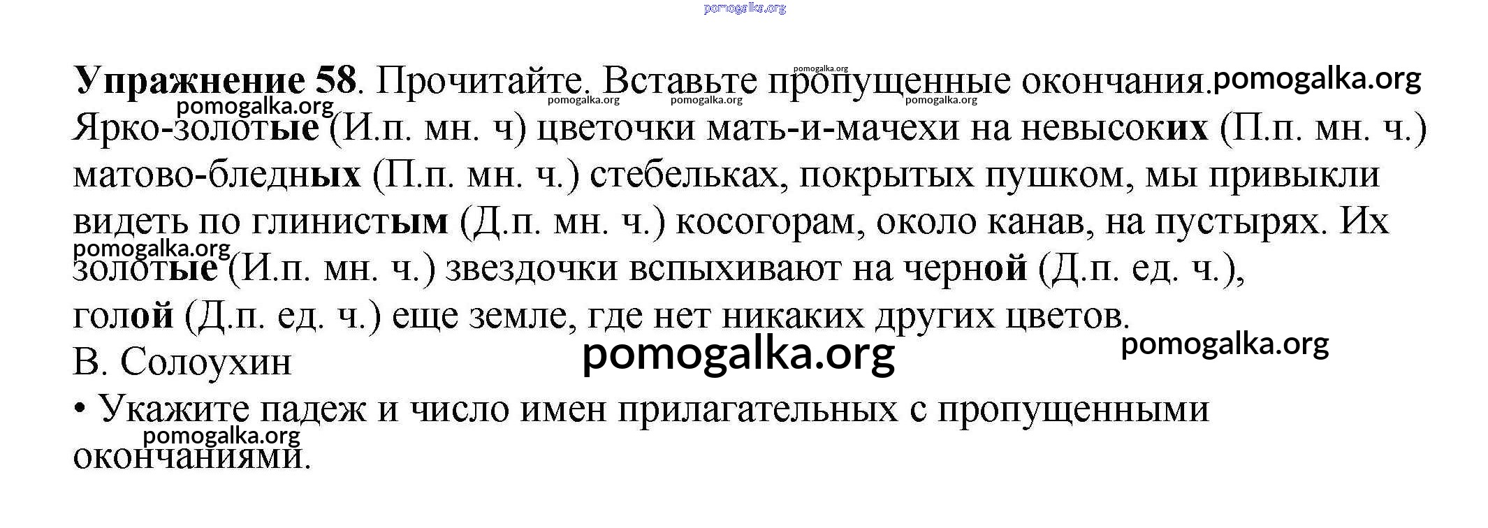 Готовые ответы - Русский язык 4 класс рабочая тетрадь Канакина В.П. - часть 2. задание № 58