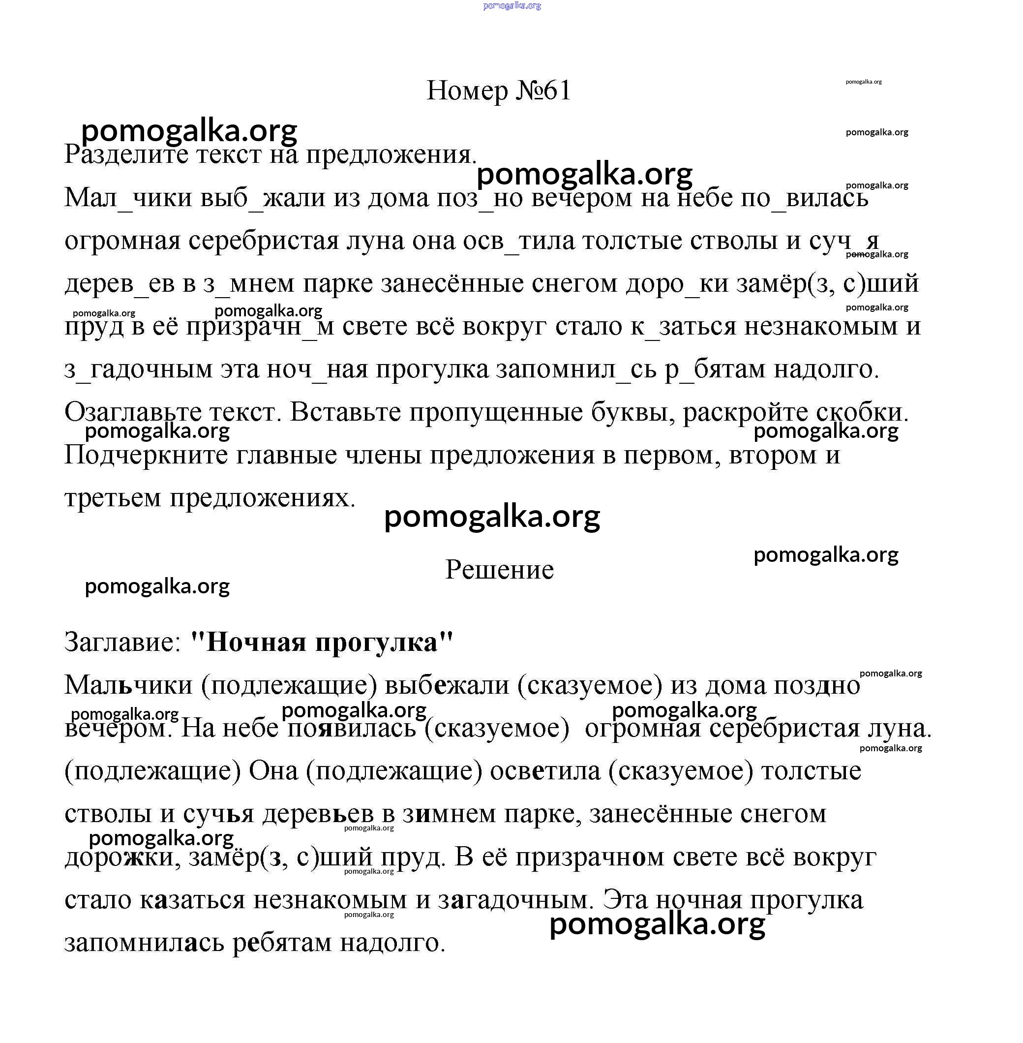 Готовые ответы - Русский язык 4 класс рабочая тетрадь Климанова Л.Ф. - часть 1. задание № 61
