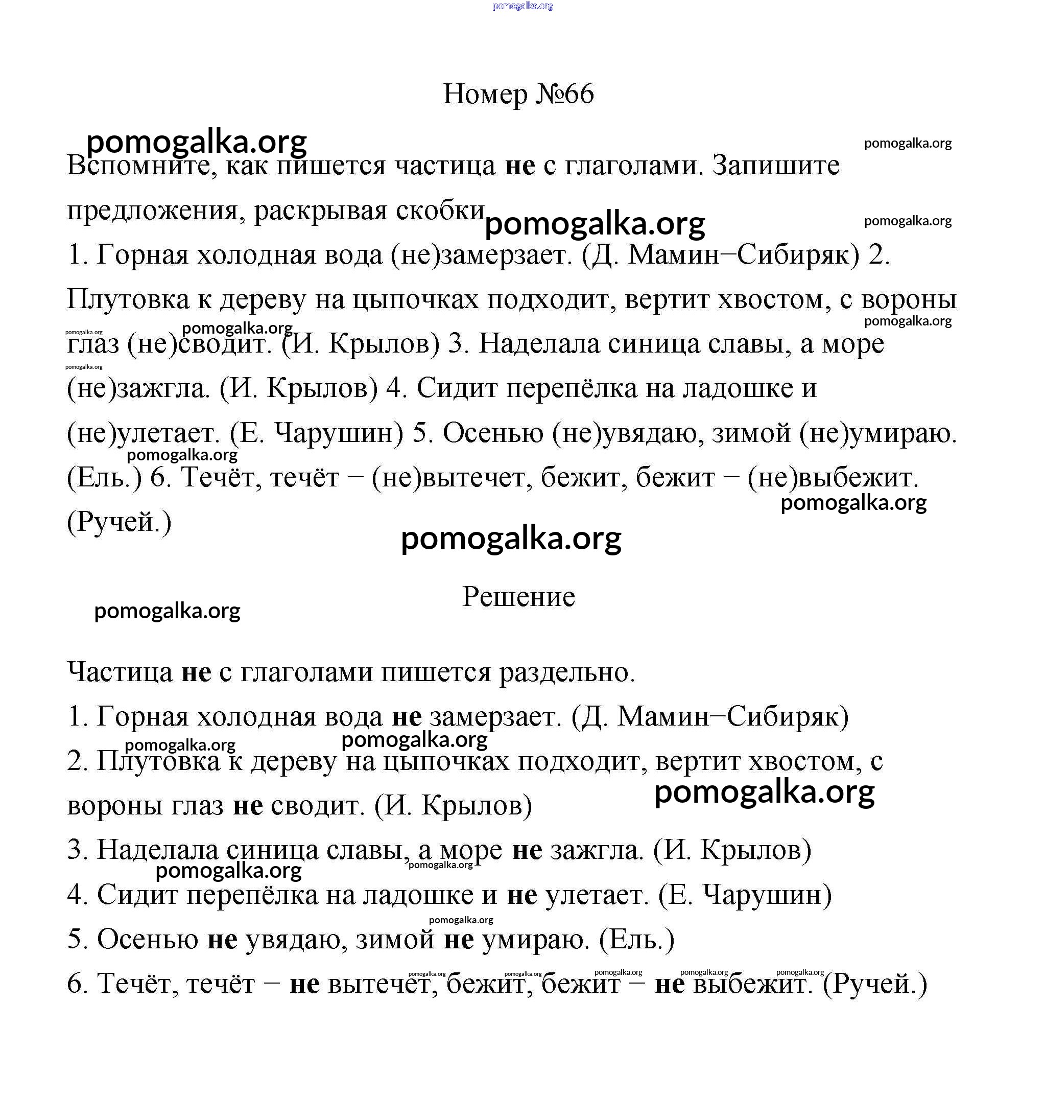 Готовые ответы - Русский язык 4 класс рабочая тетрадь Климанова Л.Ф. - часть 1. задание № 66