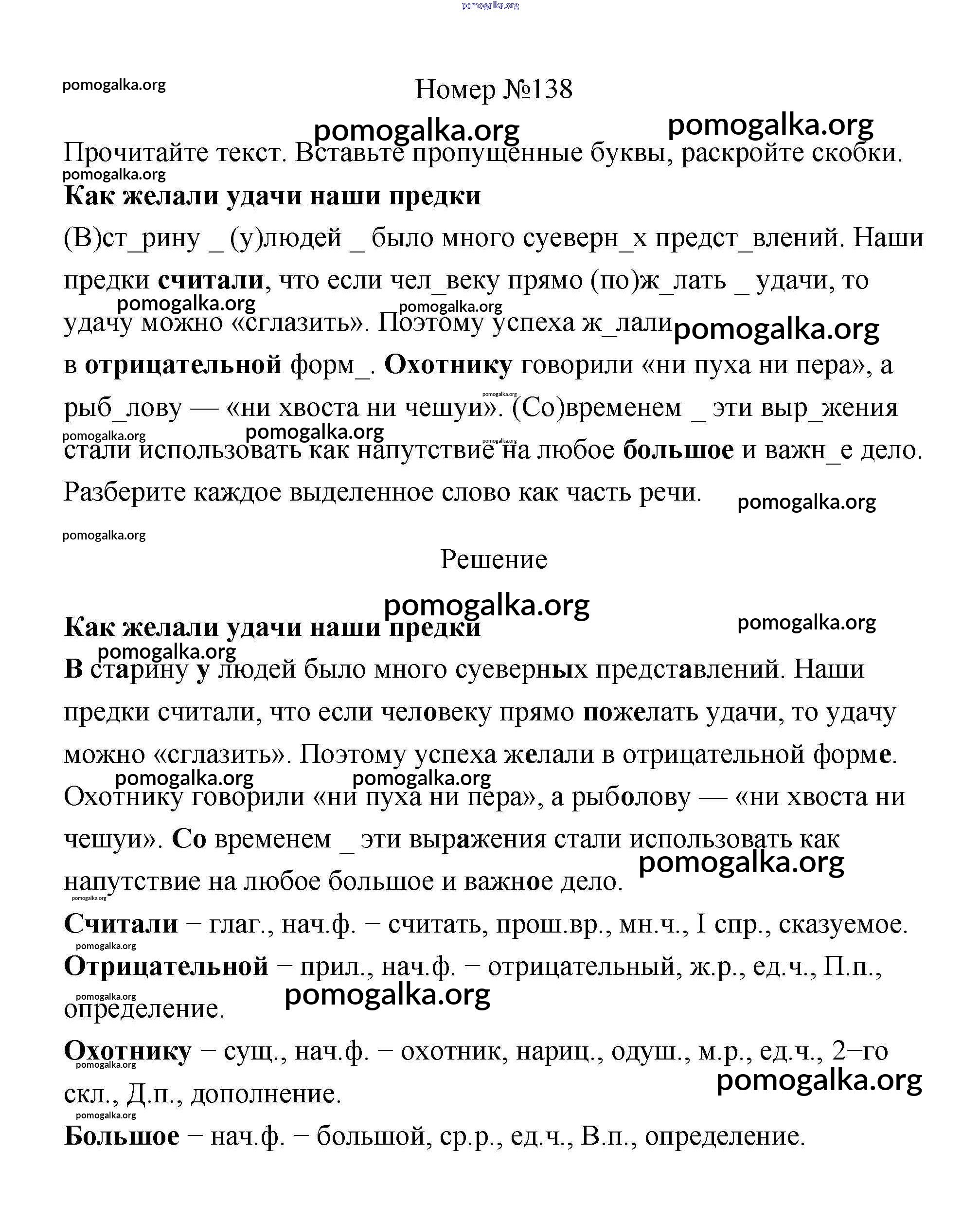 Готовые ответы - Русский язык 4 класс рабочая тетрадь Климанова Л.Ф. - часть 2. задание № 138