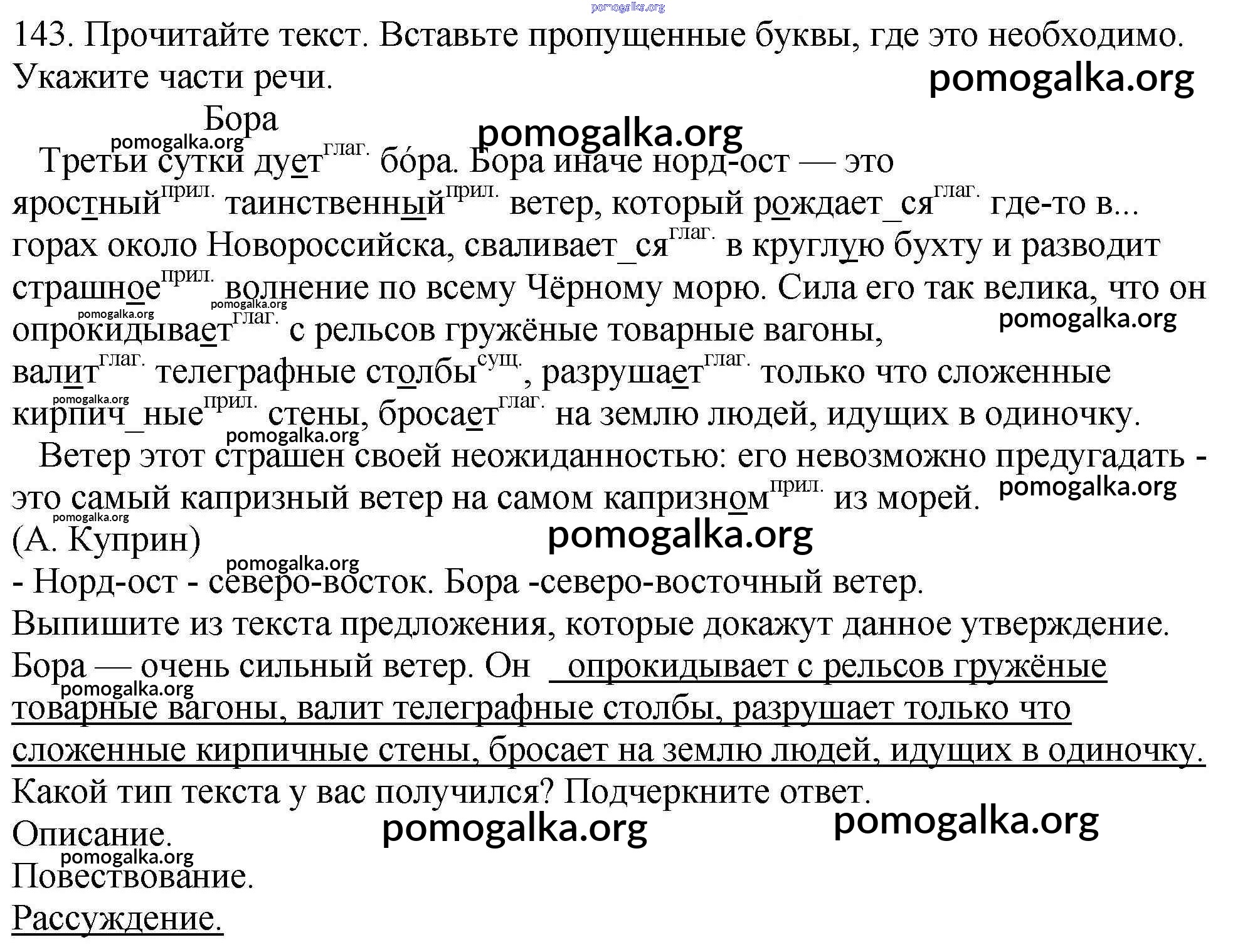 Готовые ответы - Русский язык 4 класс рабочая тетрадь Климанова Л.Ф. - часть 2. задание № 143