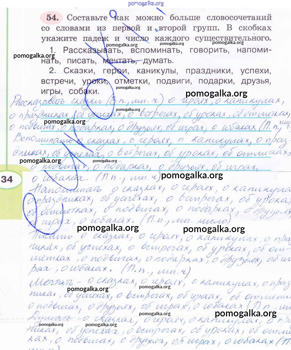 Готовые ответы - Русский язык 4 класс рабочая тетрадь Климанова Л.Ф. - часть 2. задание № 54