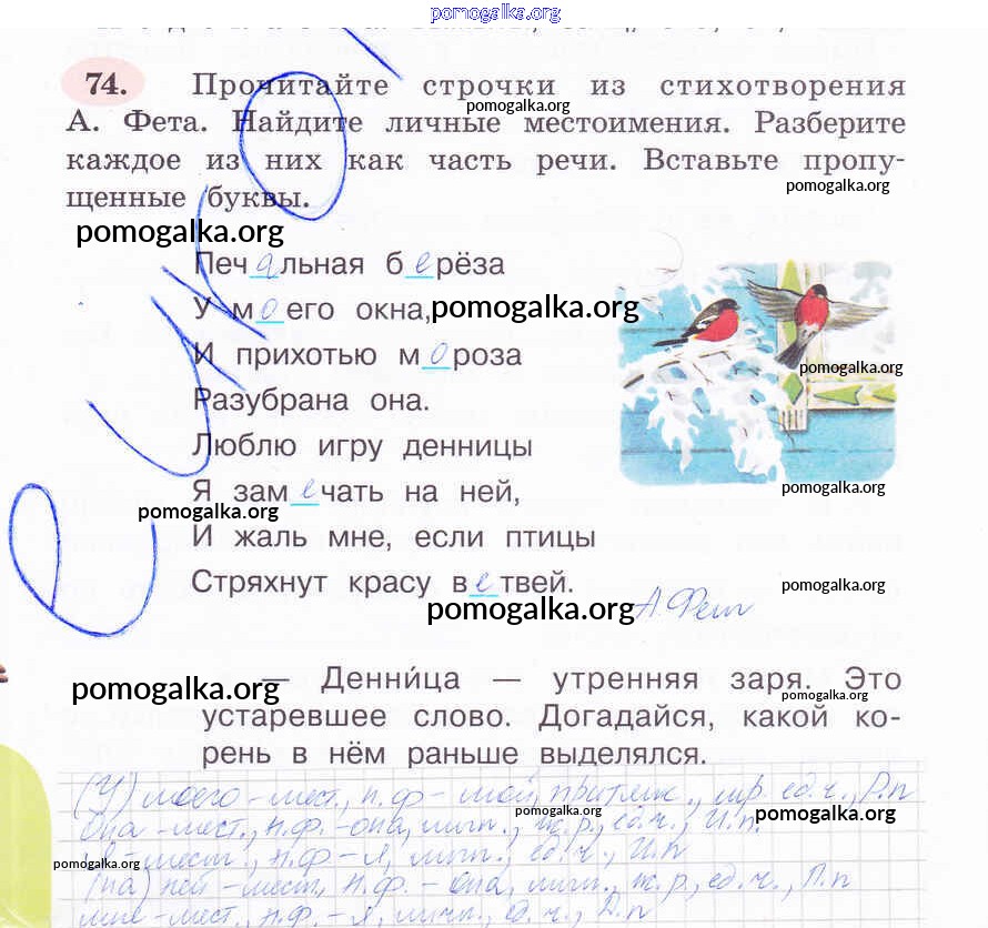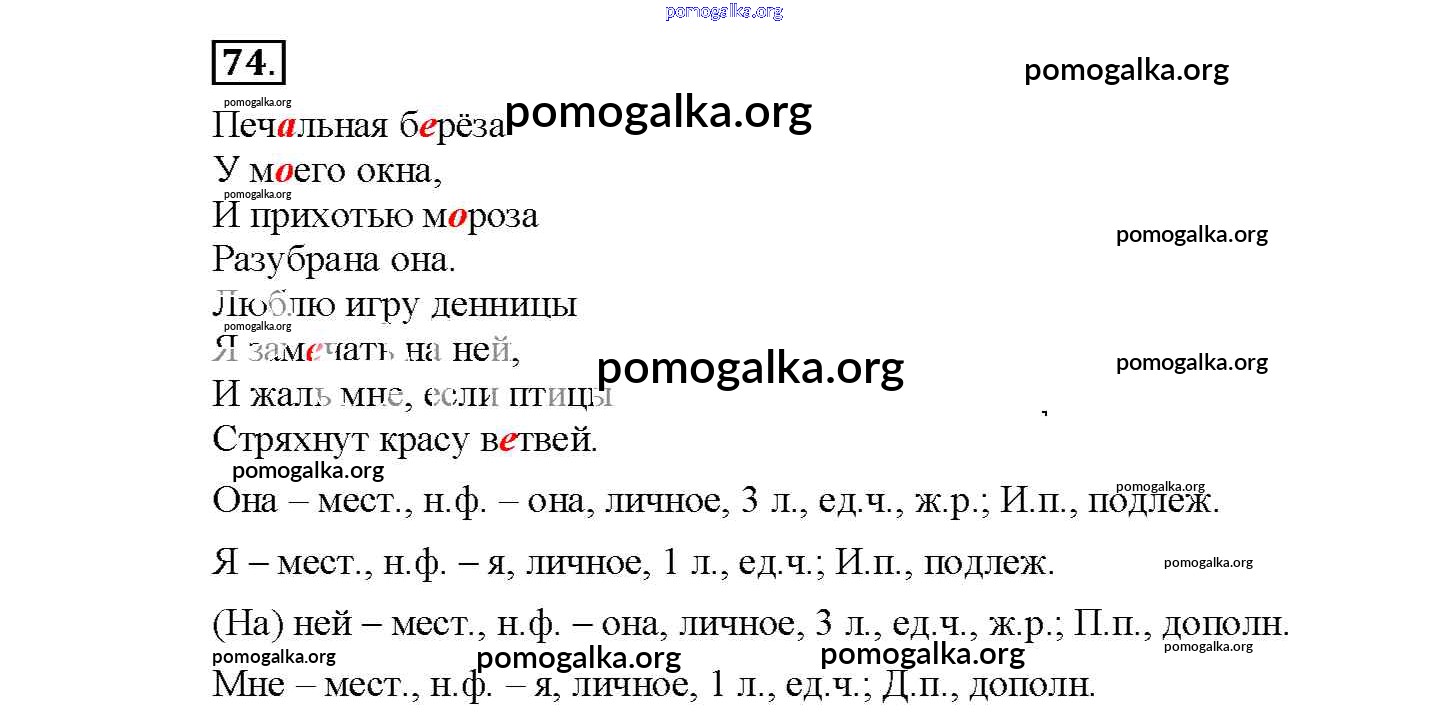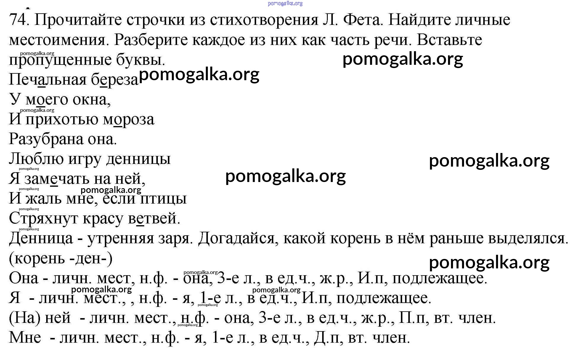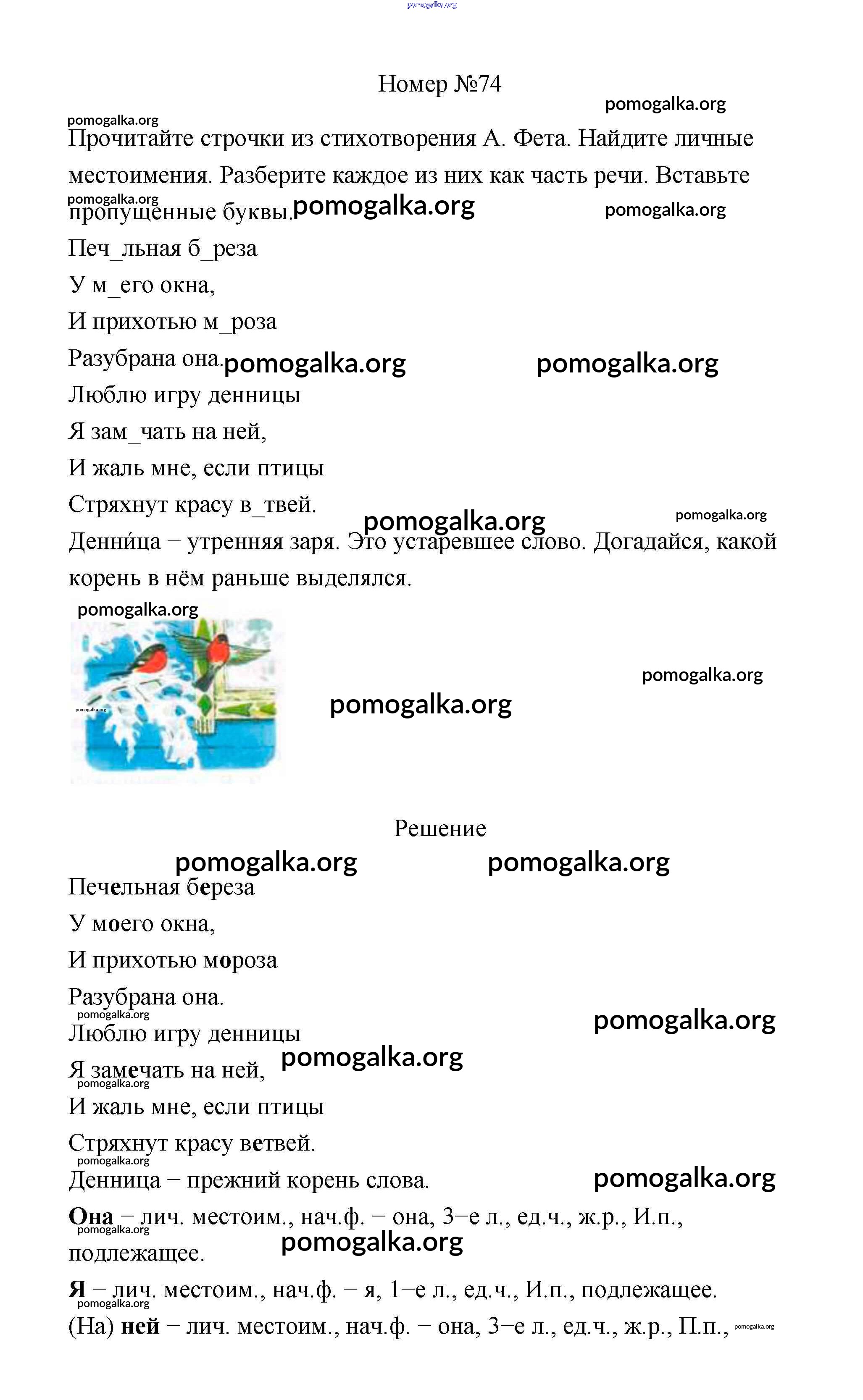 Готовые ответы - Русский язык 4 класс рабочая тетрадь Климанова Л.Ф. - часть 2. задание № 74