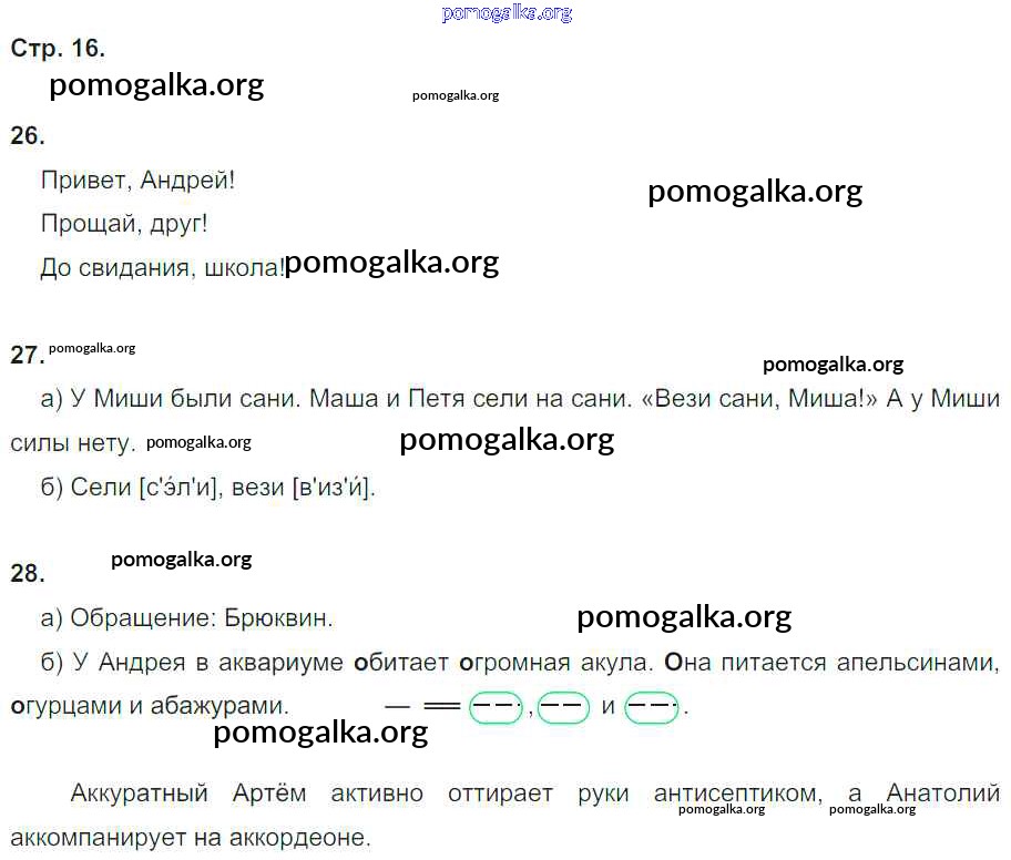 Готовые ответы - Русский язык 4 класс рабочая тетрадь Нечаева Н.В. - часть 1. страница № 16