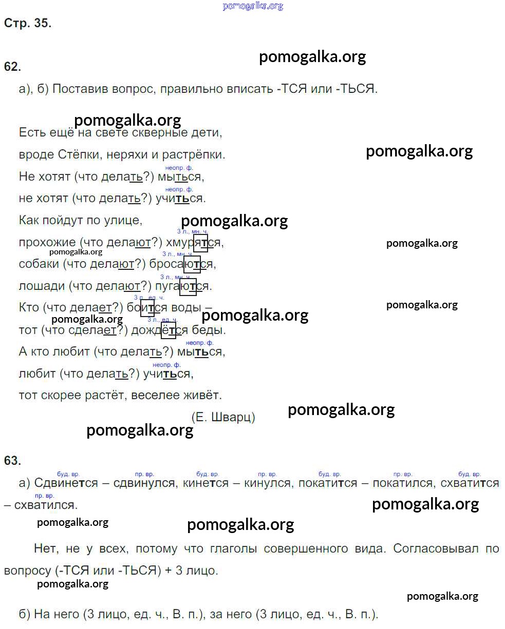 Готовые ответы - Русский язык 4 класс рабочая тетрадь Нечаева Н.В. - часть 2. страница № 35