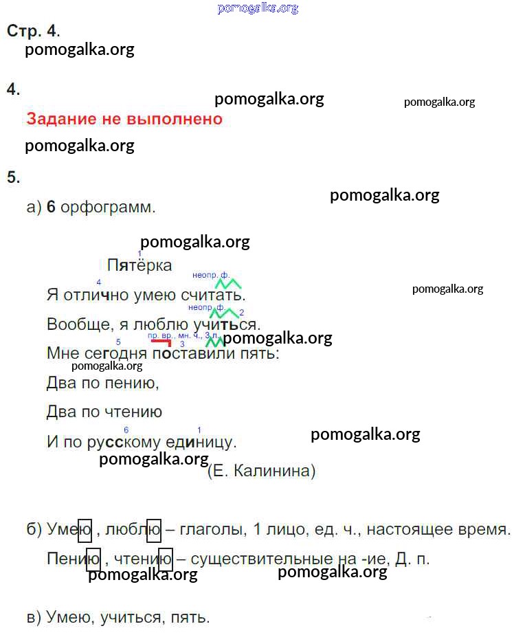 Готовые ответы - Русский язык 4 класс рабочая тетрадь Нечаева Н.В. - часть 3. страница № 4