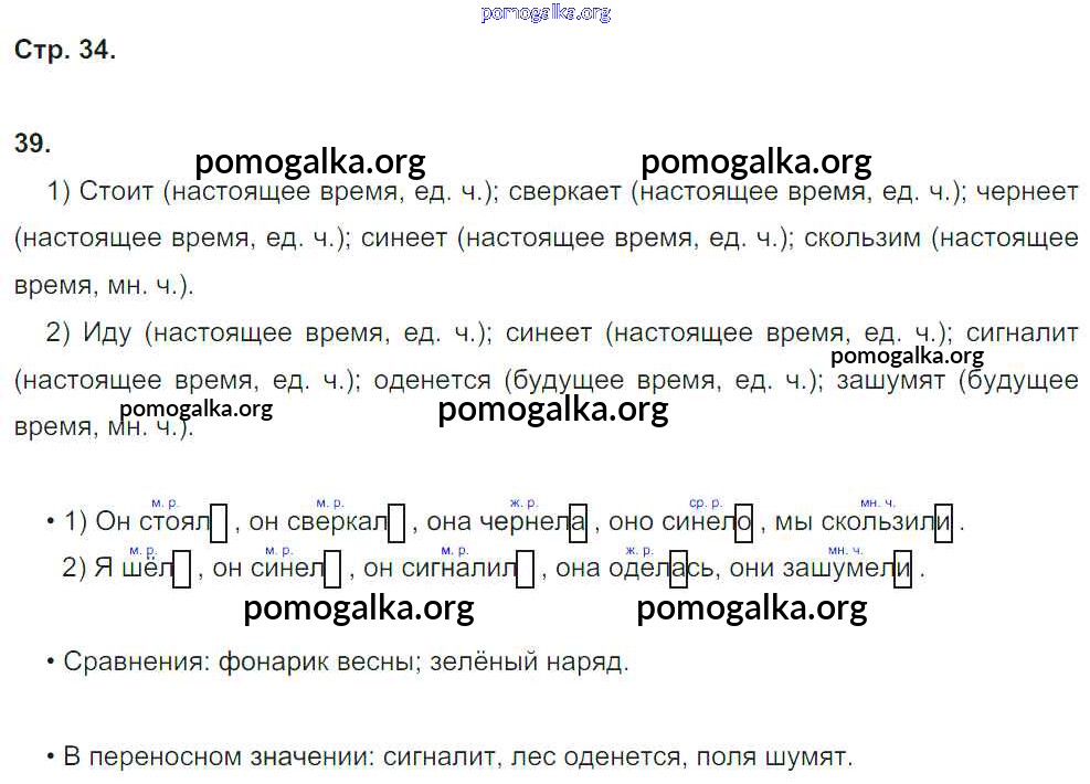 Готовые ответы - Русский язык 4 класс рабочая тетрадь Песняева Н.А. - часть 1. страница 34