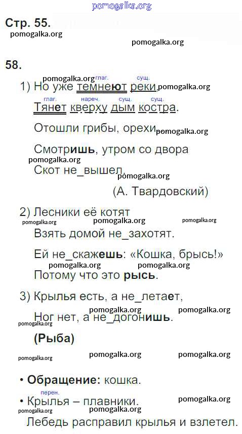 Готовые ответы - Русский язык 4 класс рабочая тетрадь Песняева Н.А. - часть 2. страница 55