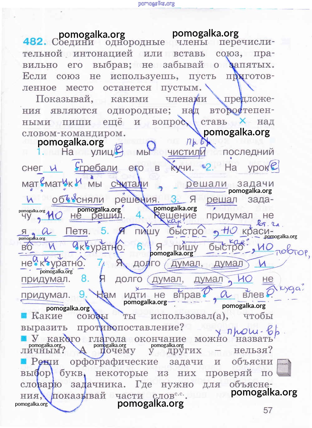 Готовые ответы - Русский язык 4 класс К тайнам нашего языка: тетрадь-задачник Соловейчик М.С. - часть 2. страница 57