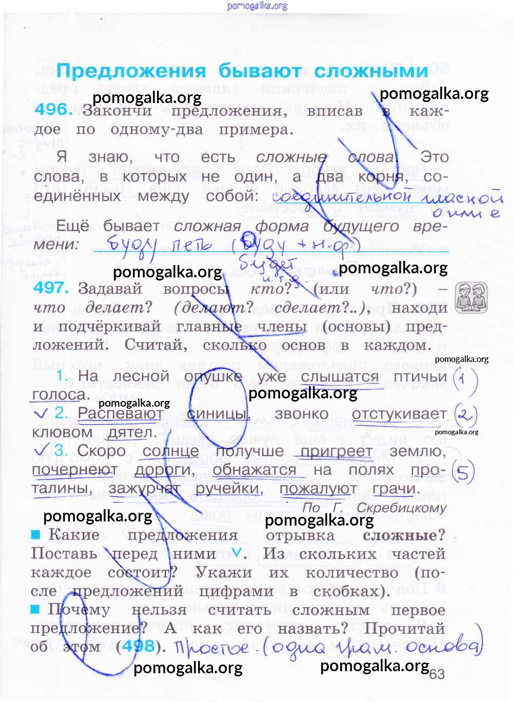 Готовые ответы - Русский язык 4 класс К тайнам нашего языка: тетрадь-задачник Соловейчик М.С. - часть 2. страница 63