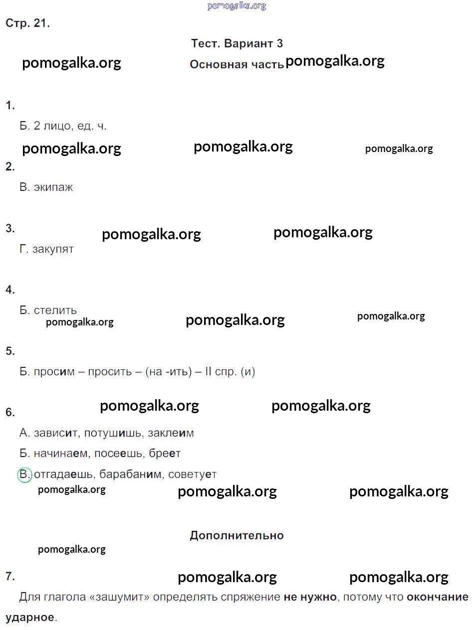 Готовые ответы - Русский язык 4 класс Тесты и самостоятельные работы для текущего контроля Калинина О.Б. (к уч. Желтовской) - страница 21