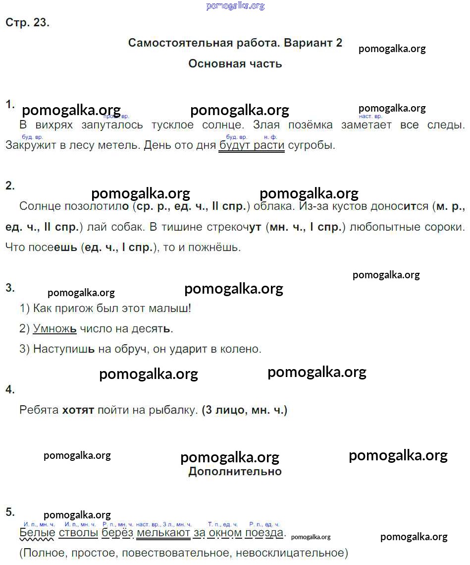 Готовые ответы - Русский язык 4 класс Тесты и самостоятельные работы для текущего контроля Калинина О.Б. (к уч. Желтовской) - страница 23
