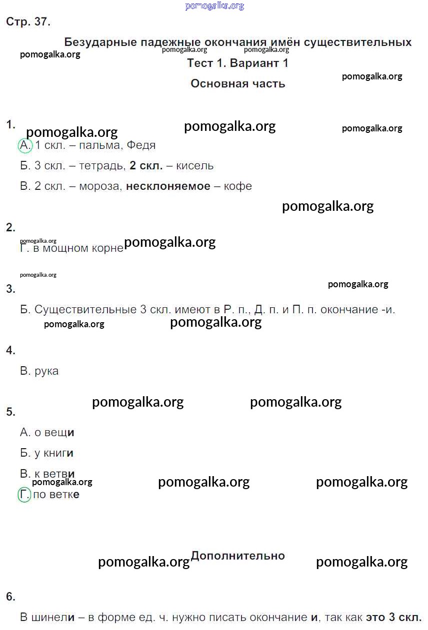 Готовые ответы - Русский язык 4 класс Тесты и самостоятельные работы для текущего контроля Калинина О.Б. (к уч. Желтовской) - страница 37