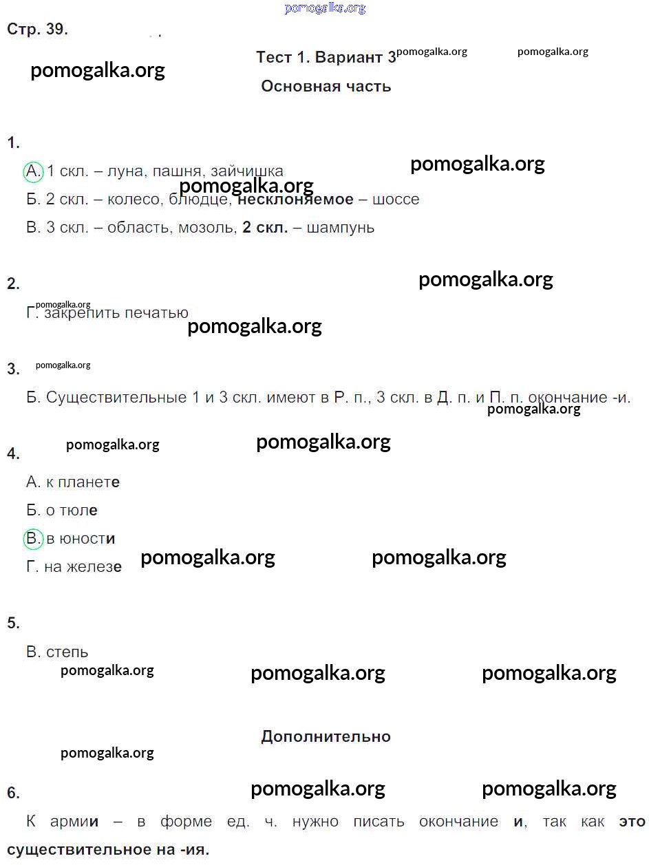Готовые ответы - Русский язык 4 класс Тесты и самостоятельные работы для текущего контроля Калинина О.Б. (к уч. Желтовской) - страница 39