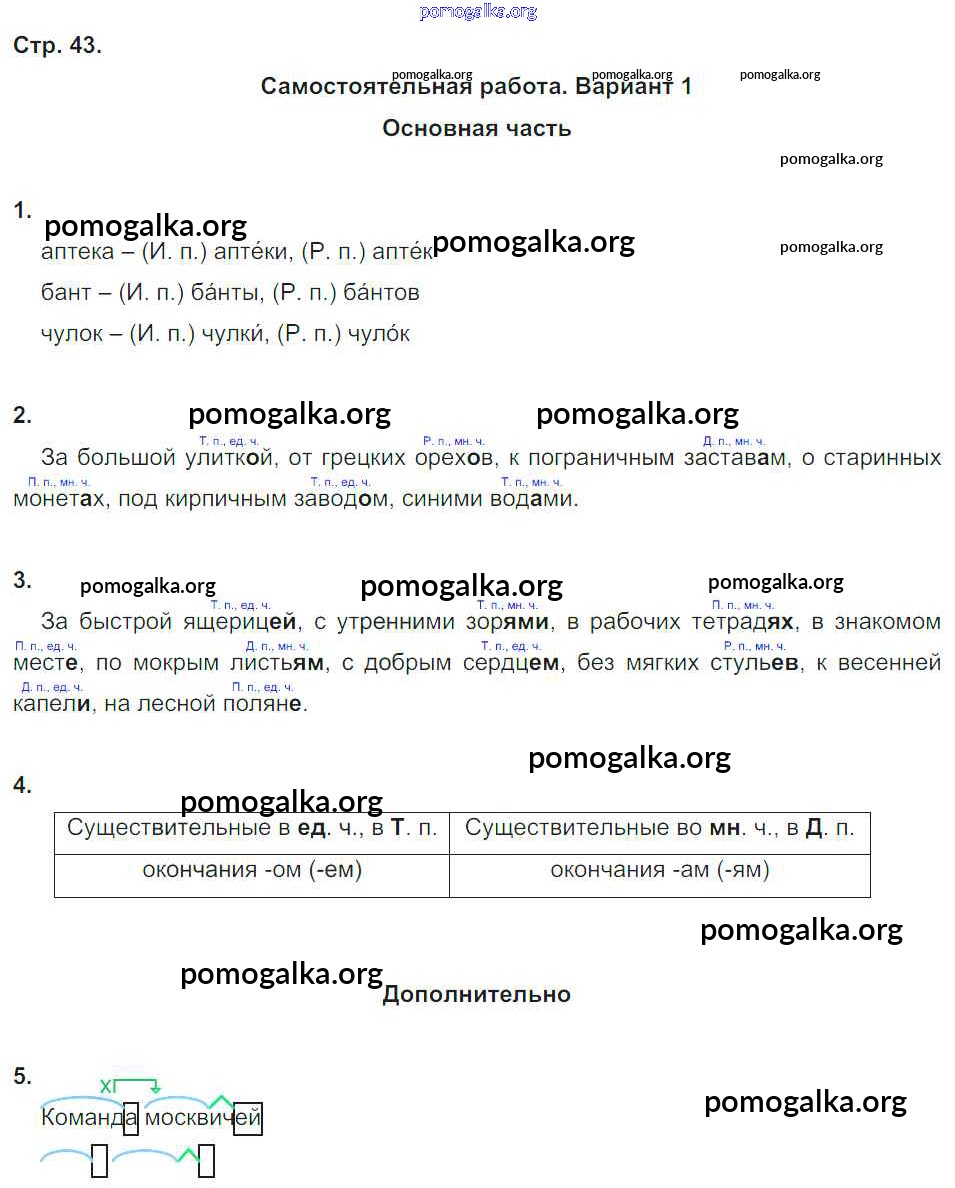 Готовые ответы - Русский язык 4 класс Тесты и самостоятельные работы для текущего контроля Калинина О.Б. (к уч. Желтовской) - страница 43
