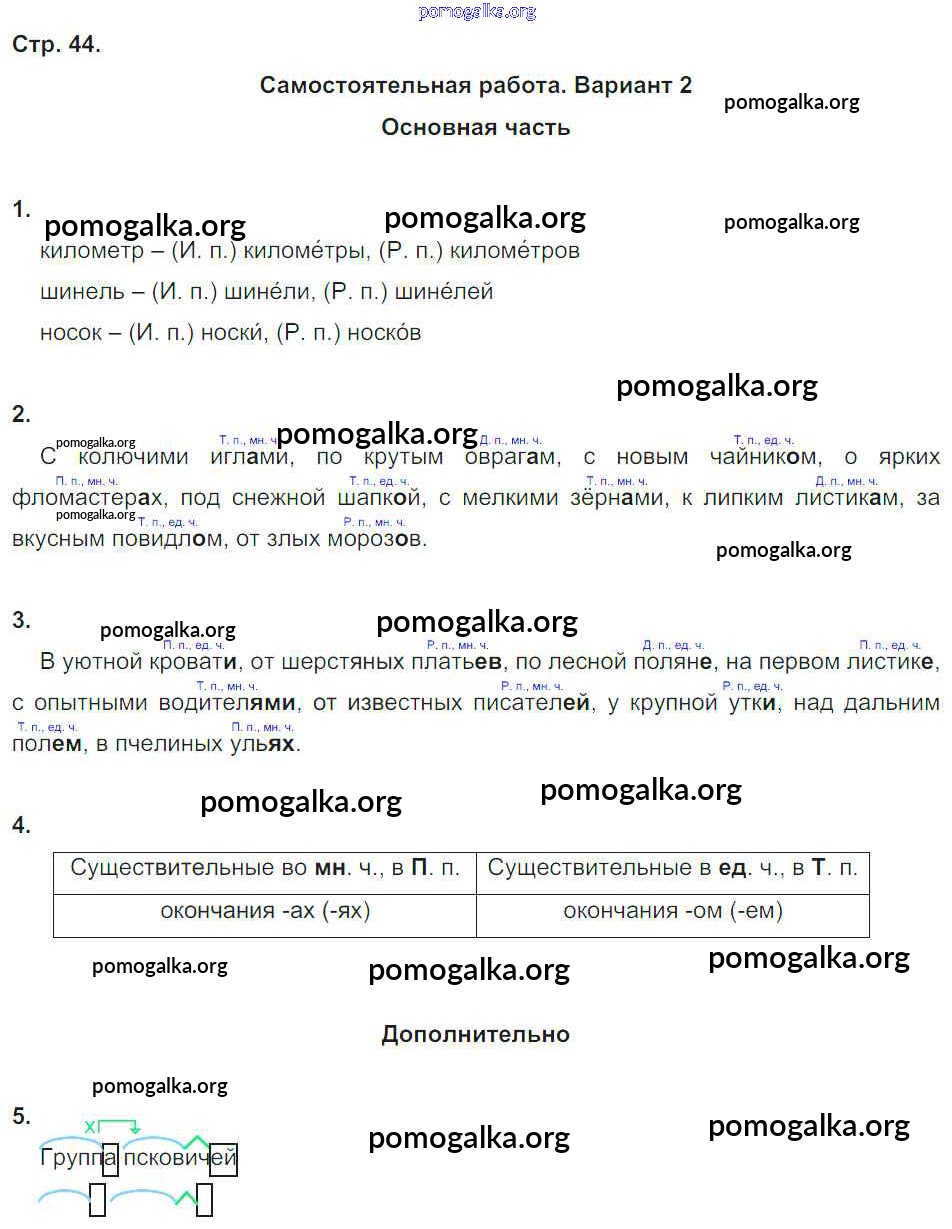 Готовые ответы - Русский язык 4 класс Тесты и самостоятельные работы для текущего контроля Калинина О.Б. (к уч. Желтовской) - страница 44