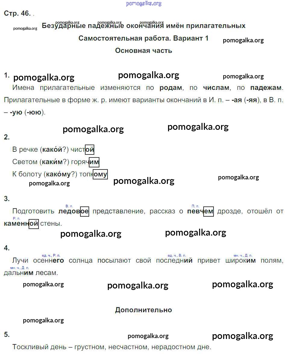 Готовые ответы - Русский язык 4 класс Тесты и самостоятельные работы для текущего контроля Калинина О.Б. (к уч. Желтовской) - страница 46