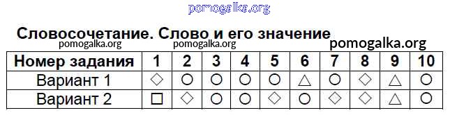 Готовые ответы - Русский язык 4 класс Тесты Тихомирова Е.М. (к уч. Климановой) - часть 1. тест Тест №8. Словосочетание. Слово и его значение