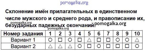 Готовые ответы - Русский язык 4 класс Тесты Тихомирова Е.М. (к уч. Зелениной) - часть 1 тест Тест №12. Склонение имён прилагательных в единственном числе мужского, среднего родов