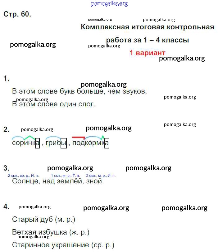 Готовые ответы - Русский язык 4 класс тетрадь для контрольных работ Романова В.Ю. - страница 60